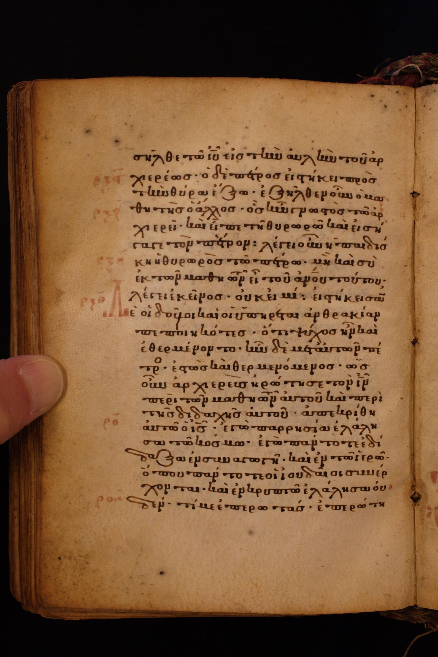 Thirteenth century minuscule of the Gospels on parchment; 256 leaves, single column, 22 lines per column.