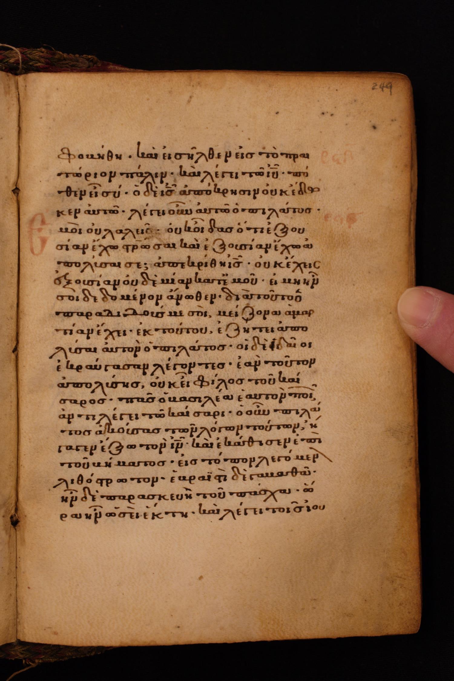 Thirteenth century minuscule of the Gospels on parchment; 256 leaves, single column, 22 lines per column.