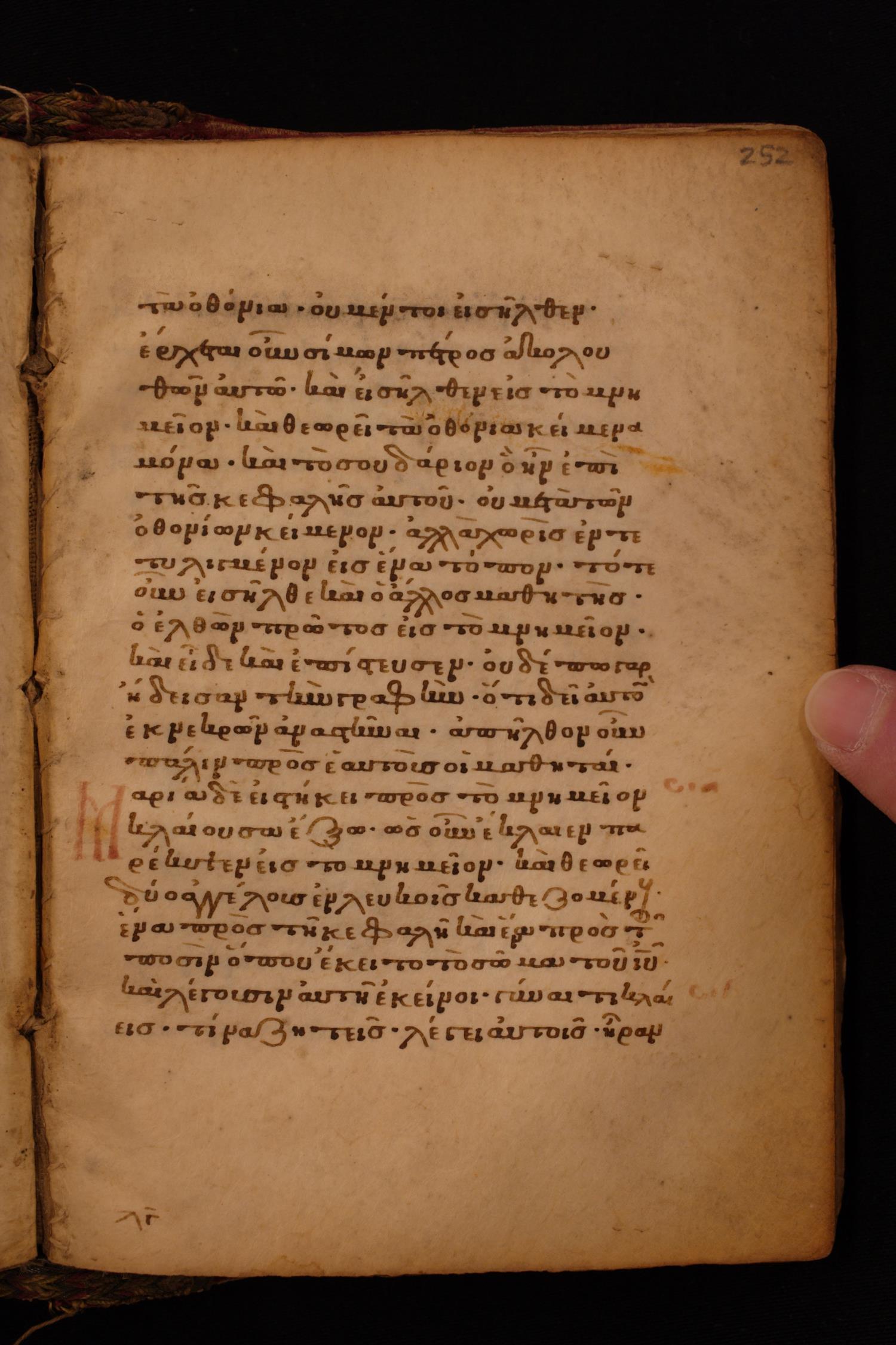 Thirteenth century minuscule of the Gospels on parchment; 256 leaves, single column, 22 lines per column.