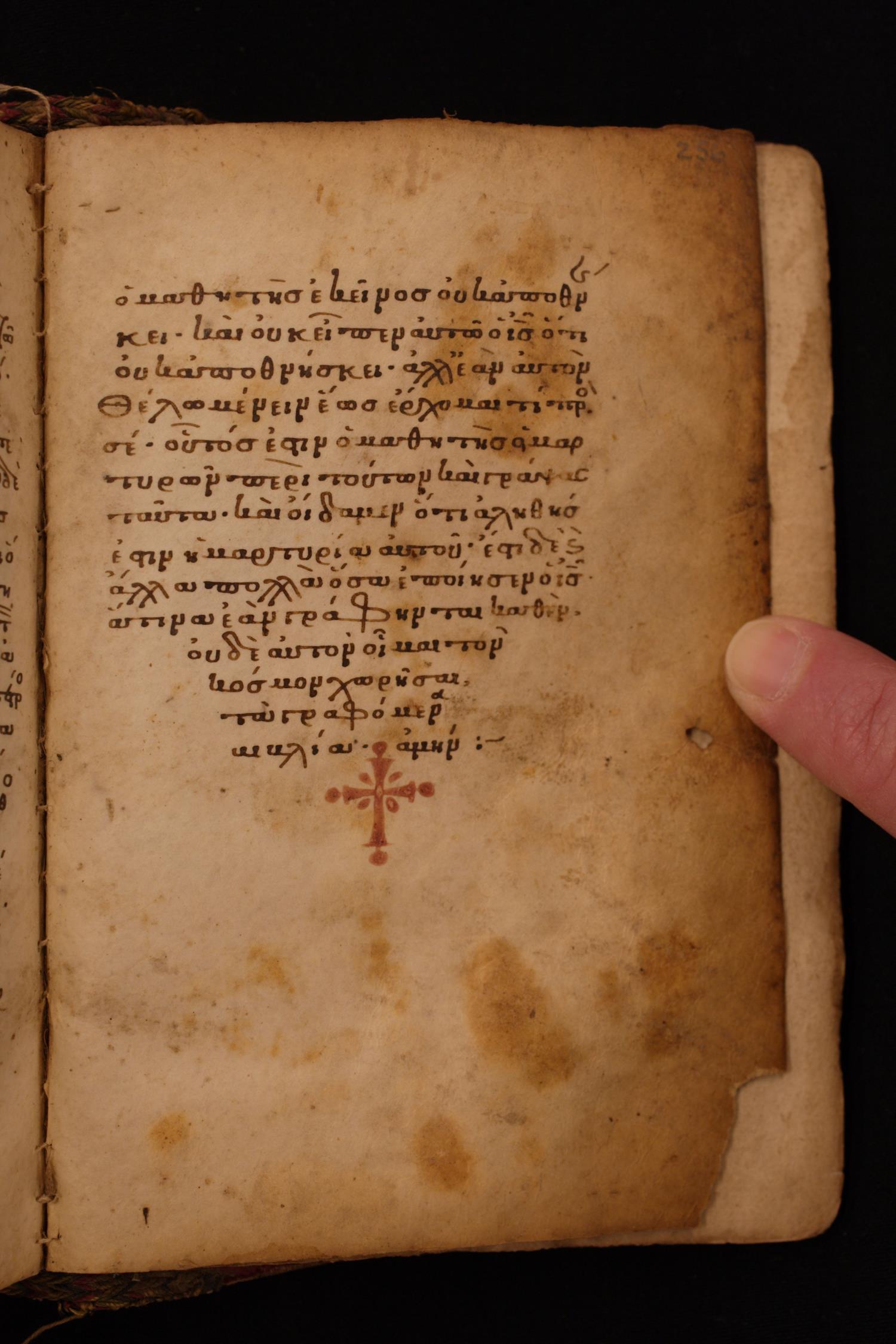 Thirteenth century minuscule of the Gospels on parchment; 256 leaves, single column, 22 lines per column.