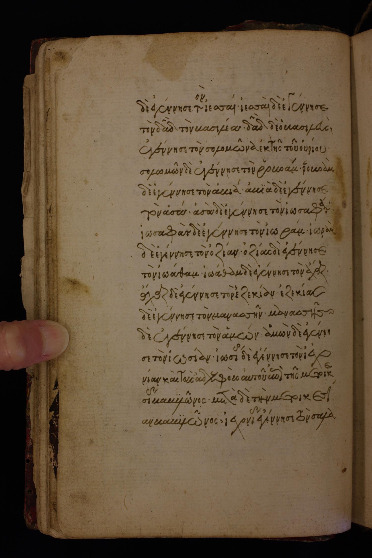 Ὀζείας / Ὀζίας δὲ ἐγέννησεν τὸν Ἰωαθάμ, Ἰωαθὰμ δὲ ἐγέννησεν τὸν Ἄχας / Ἀχάζ, Ἄχας / Ἀχὰζ δὲ ἐγέννησεν τὸν Ἑζεκίαν,