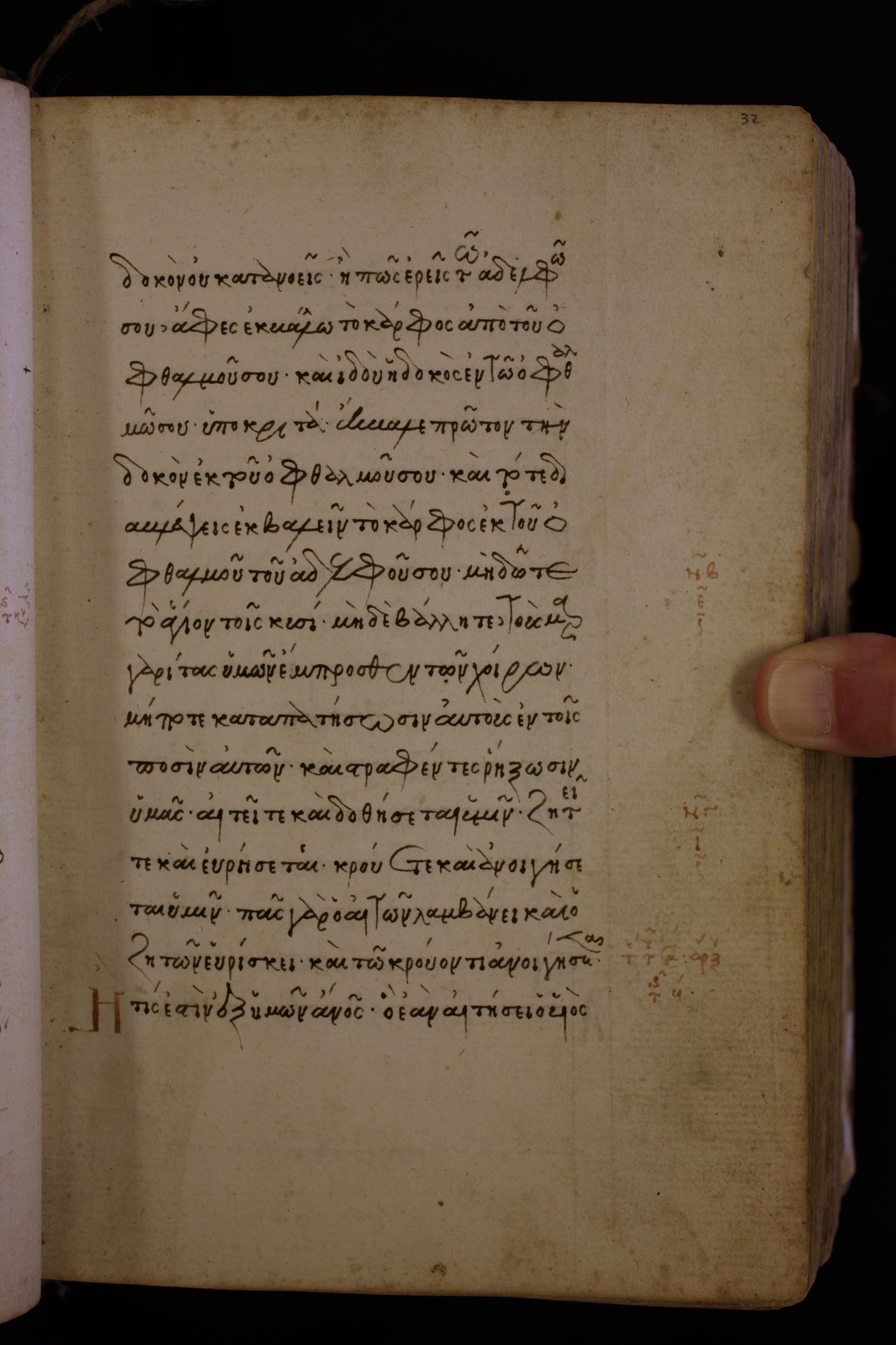 ἢ πῶς ἐρεῖς τῷ ἀδελφῷ σου Ἄφες ἐκβάλω τὸ κάρφος ἐκ τοῦ ὀφθαλμοῦ σου, καὶ ἰδοὺ ἡ δοκὸς ἐν τῷ ὀφθαλμῷ σοῦ;