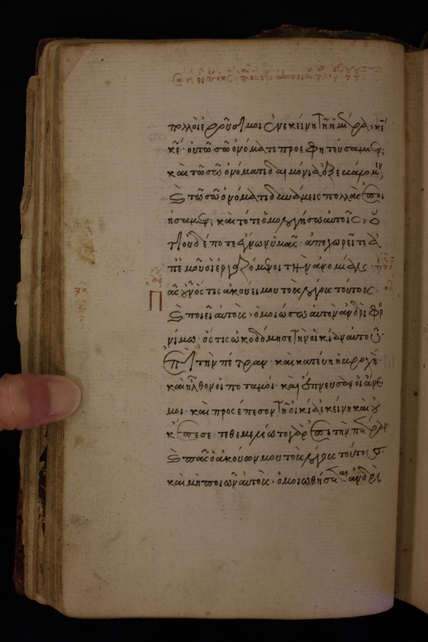 Fifteenth century minuscule (dated to 1430) of the Gospels on paper; 424 leaves, single column, 16 lines per column.