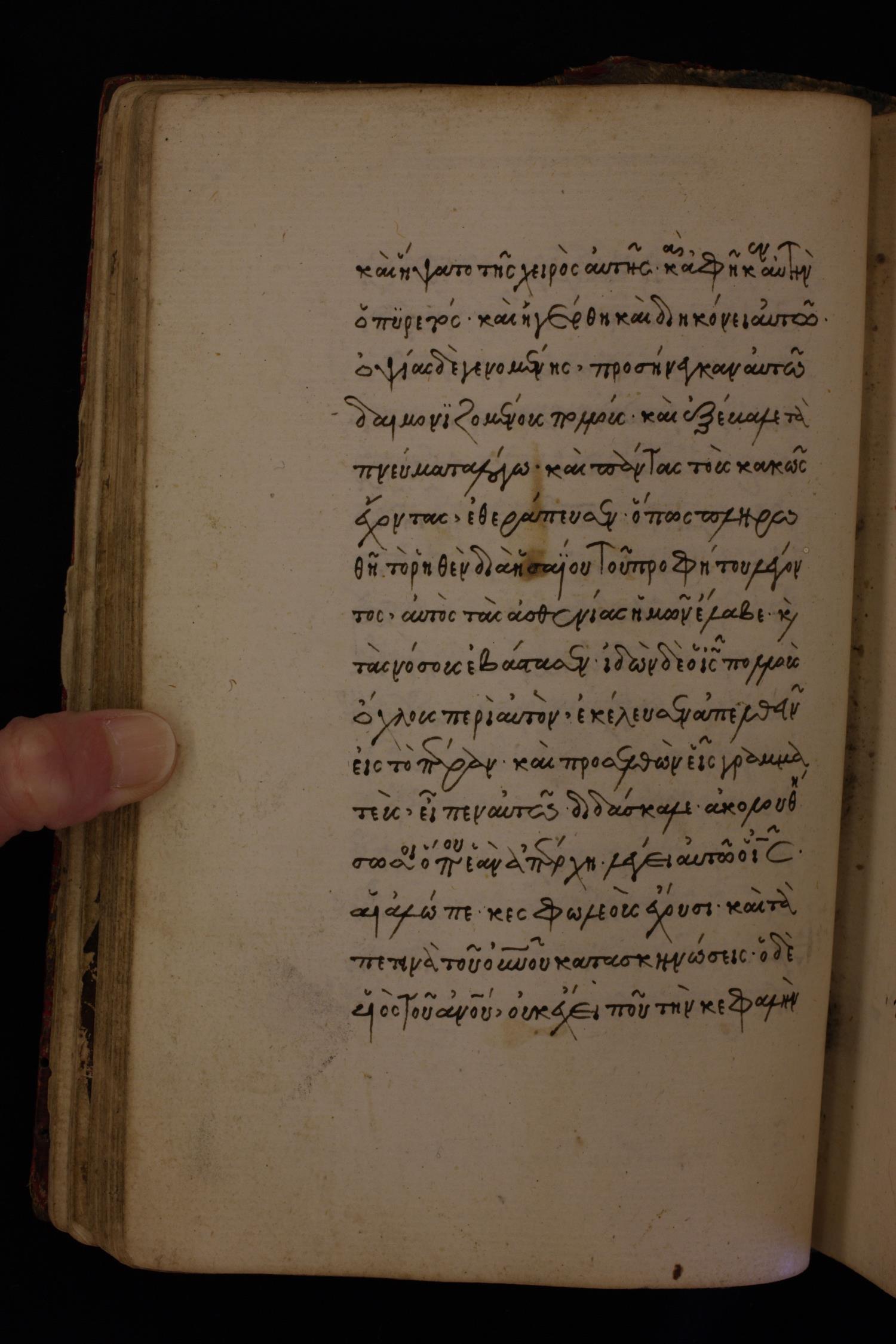 Fifteenth century minuscule (dated to 1430) of the Gospels on paper; 424 leaves, single column, 16 lines per column.