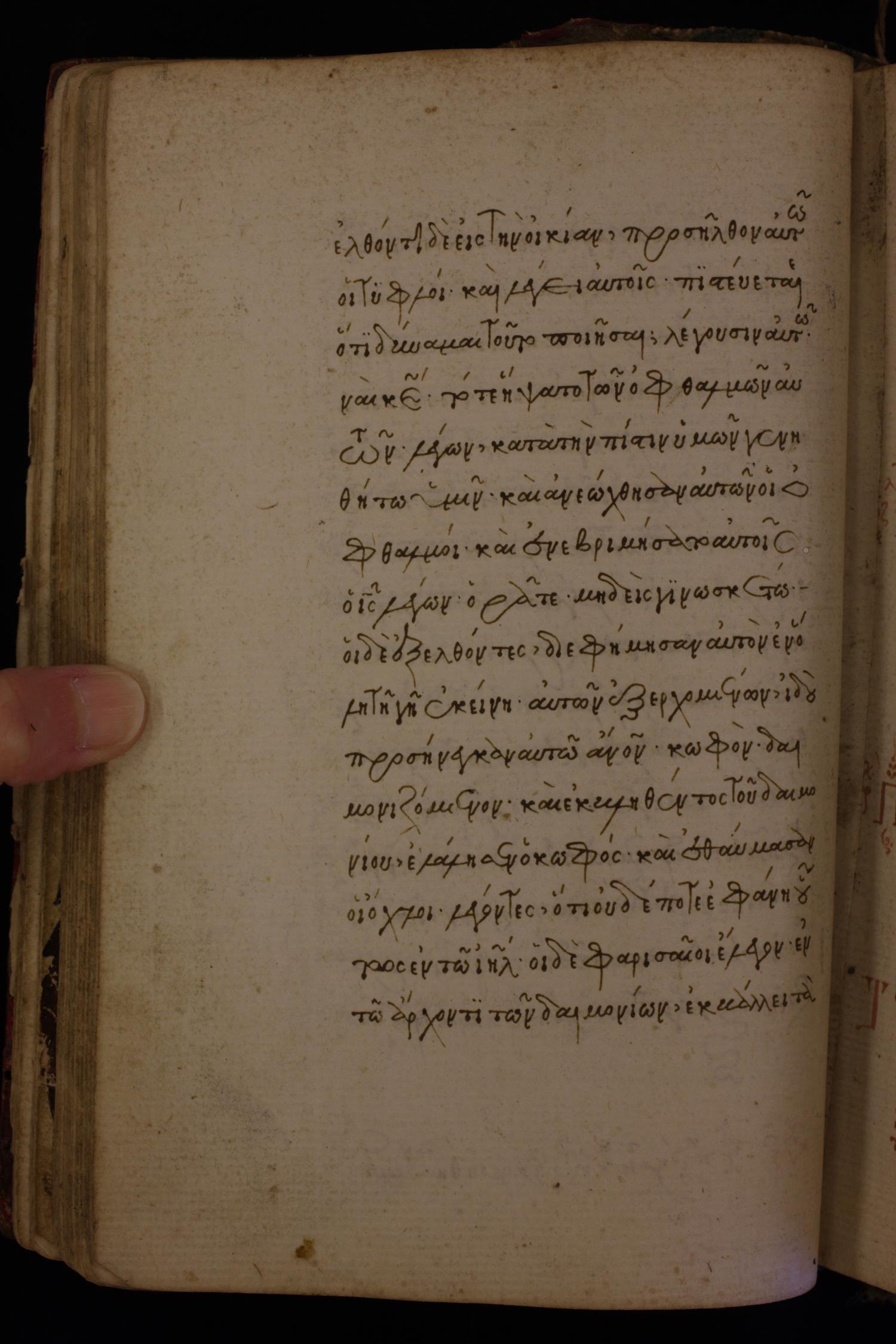 Fifteenth century minuscule (dated to 1430) of the Gospels on paper; 424 leaves, single column, 16 lines per column.