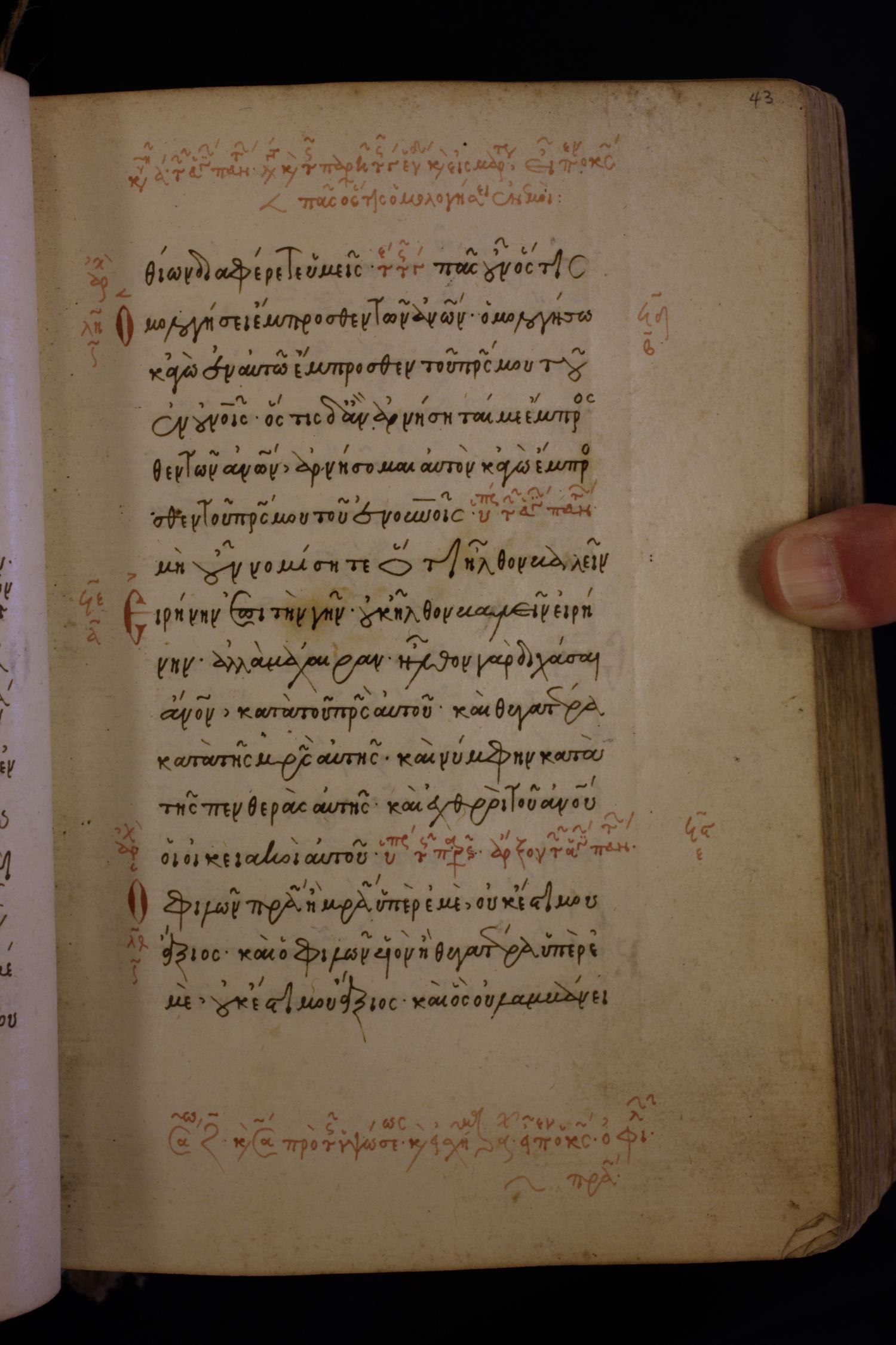 Fifteenth century minuscule (dated to 1430) of the Gospels on paper; 424 leaves, single column, 16 lines per column.