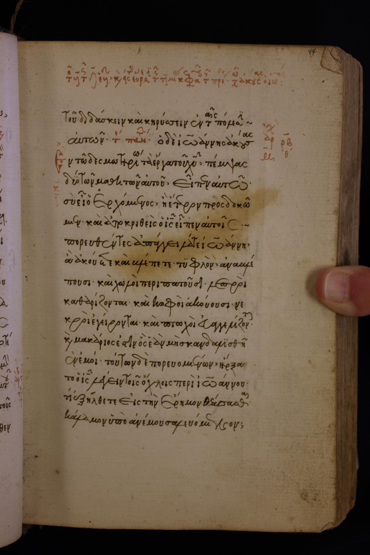 Ὁ δὲ Ἰωάνης / Ἰωάννης ἀκούσας ἐν τῷ δεσμωτηρίῳ τὰ ἔργα τοῦ χριστοῦ πέμψας διὰ τῶν μαθητῶν αὐτοῦ
