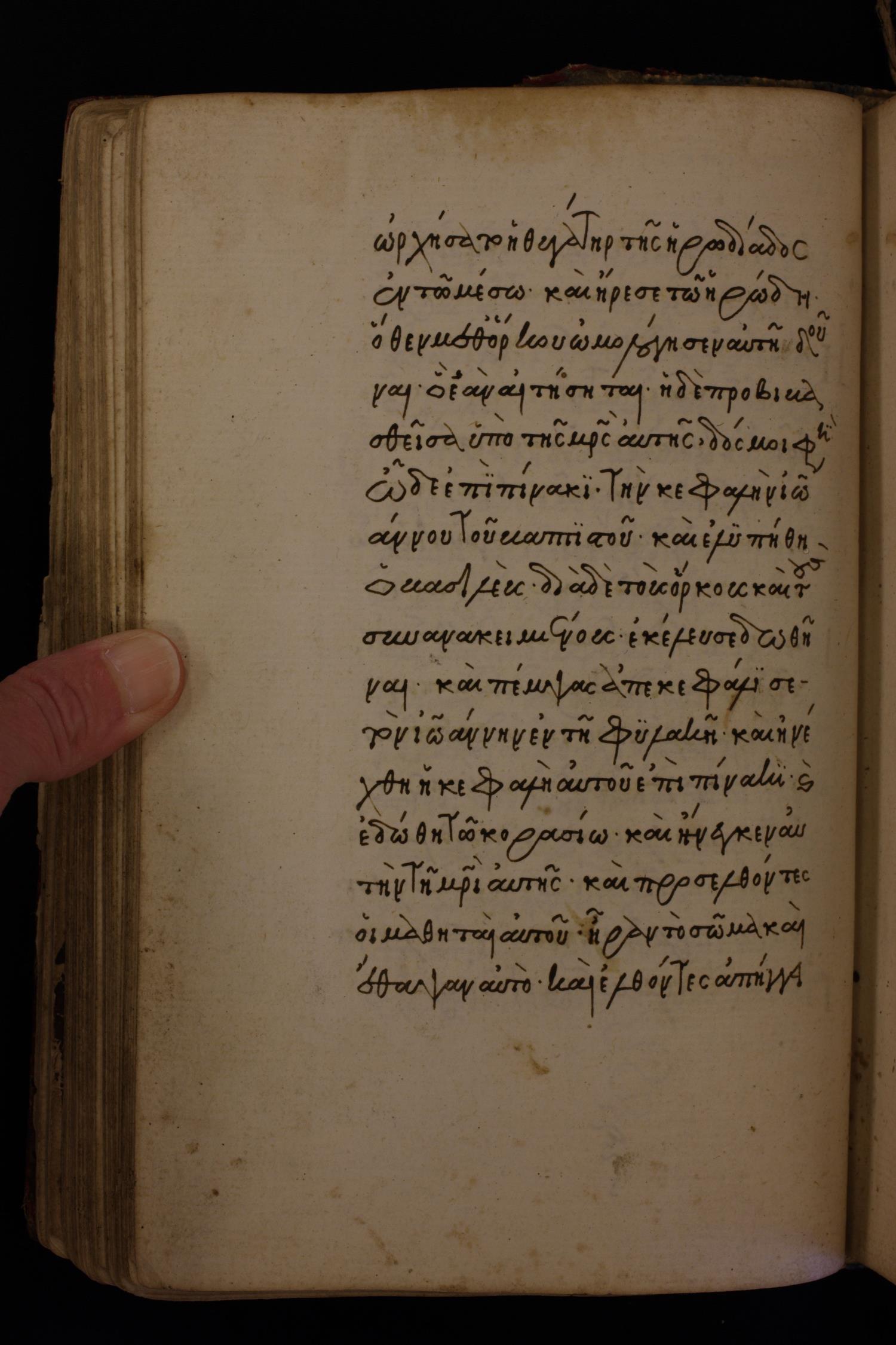 Fifteenth century minuscule (dated to 1430) of the Gospels on paper; 424 leaves, single column, 16 lines per column.