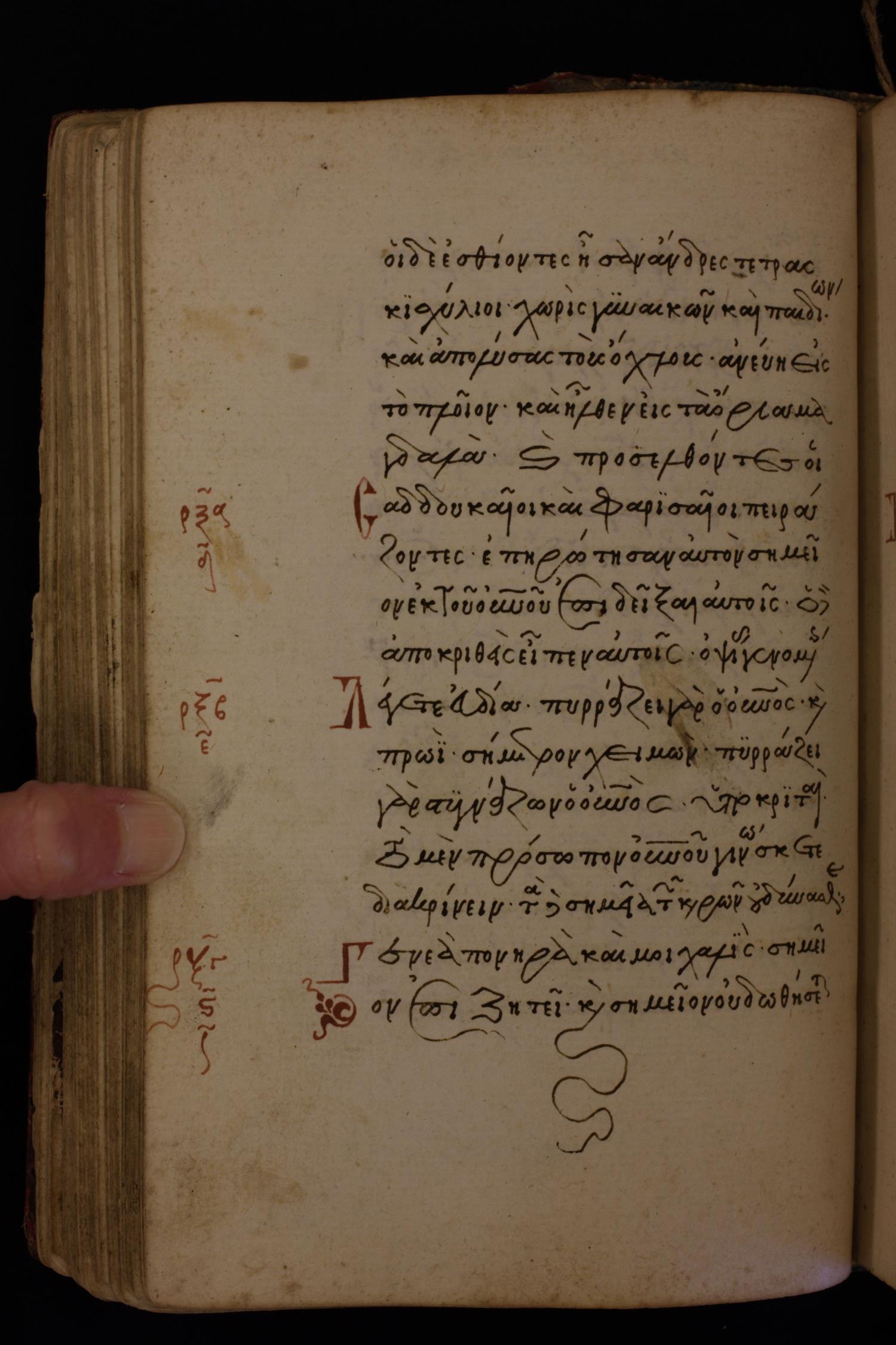 καὶ πρωί Σήμερον χειμών, πυρράζει γὰρ στυγνάζων ὁ οὐρανός. τὸ μὲν πρόσωπον τοῦ οὐρανοῦ γινώσκετε διακρίνειν, τὰ δὲ σημεῖα τῶν καιρῶν οὐ δύνασθε