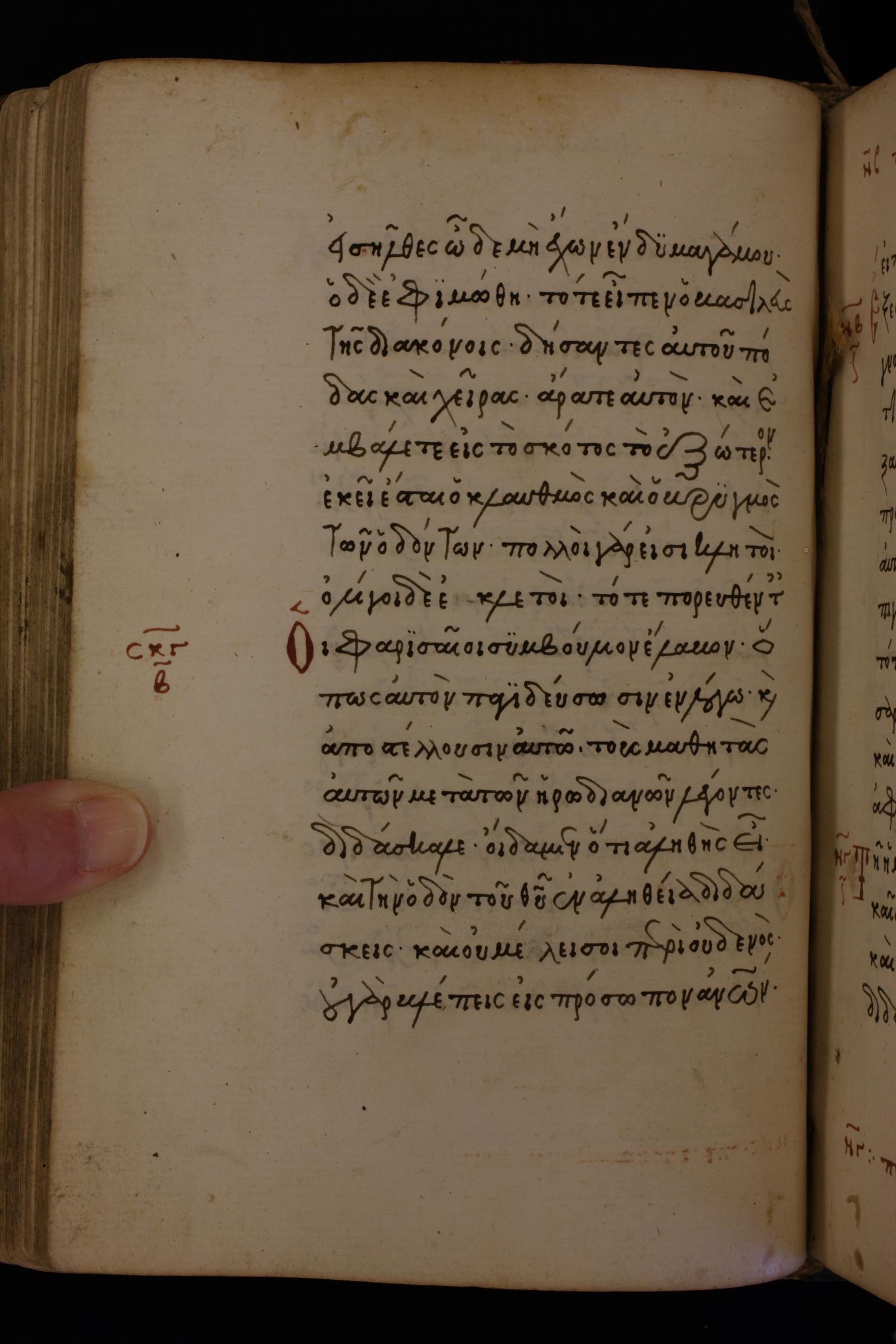 Fifteenth century minuscule (dated to 1430) of the Gospels on paper; 424 leaves, single column, 16 lines per column.
