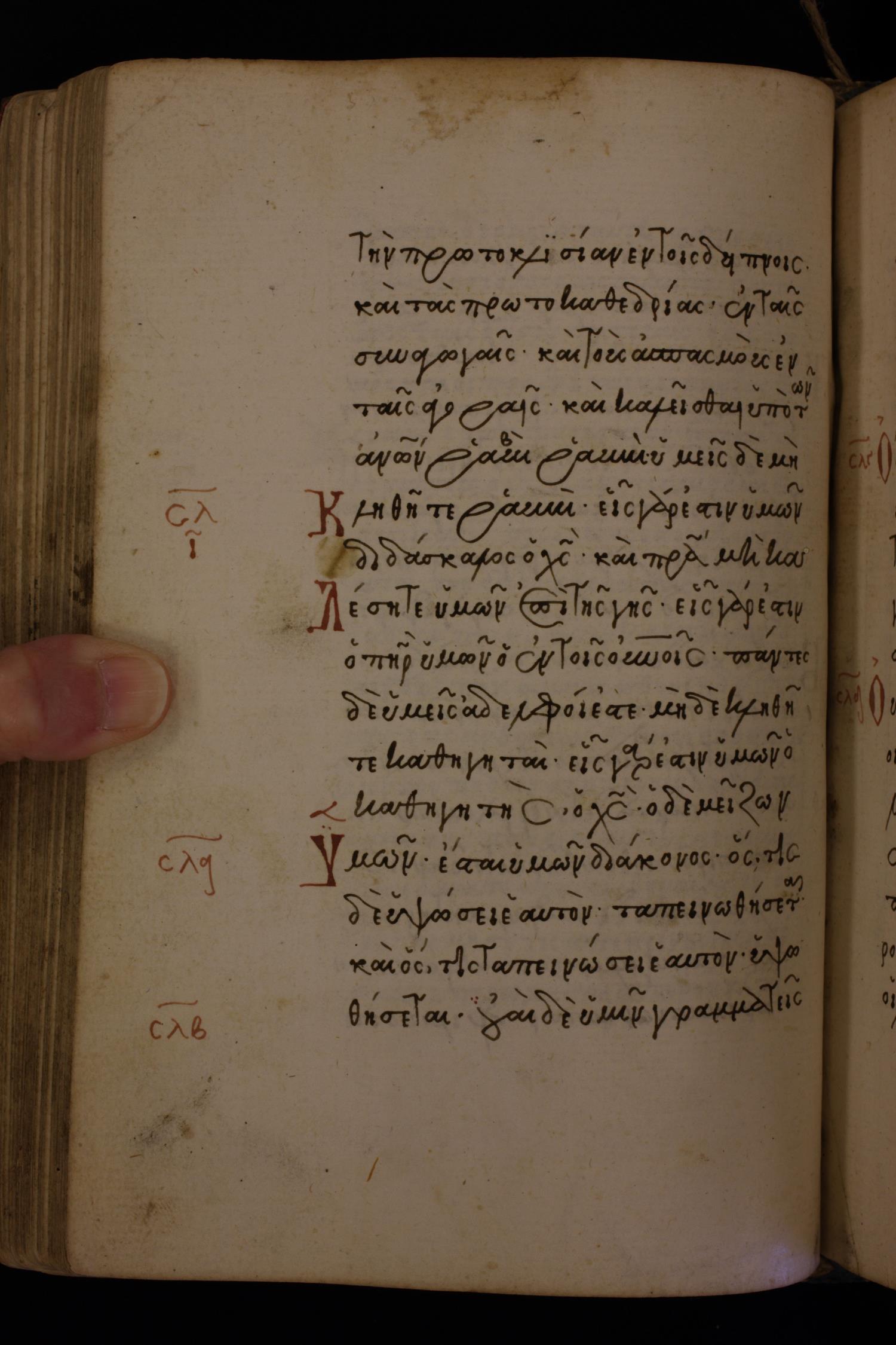 Fifteenth century minuscule (dated to 1430) of the Gospels on paper; 424 leaves, single column, 16 lines per column.