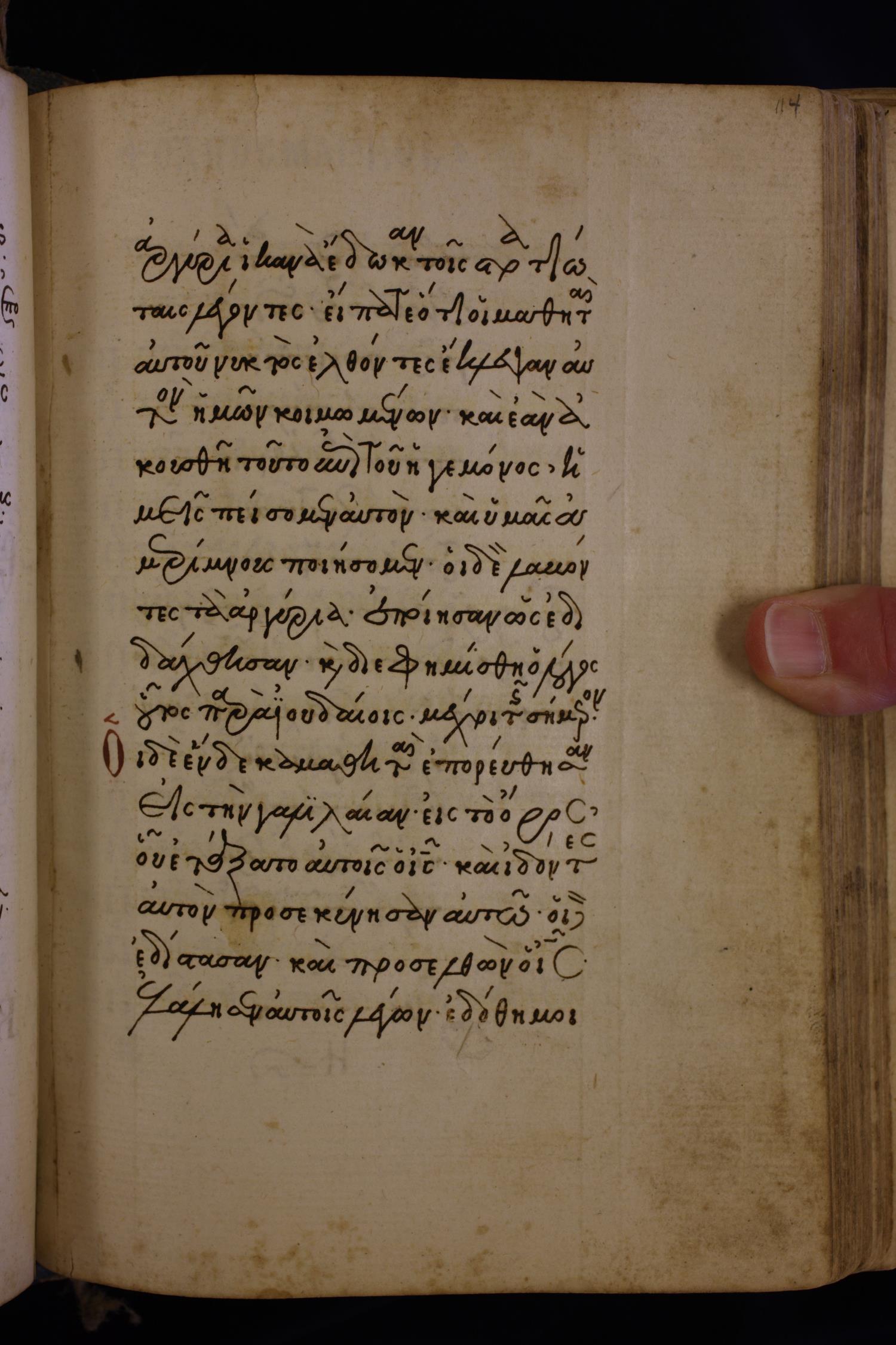 Fifteenth century minuscule (dated to 1430) of the Gospels on paper; 424 leaves, single column, 16 lines per column.