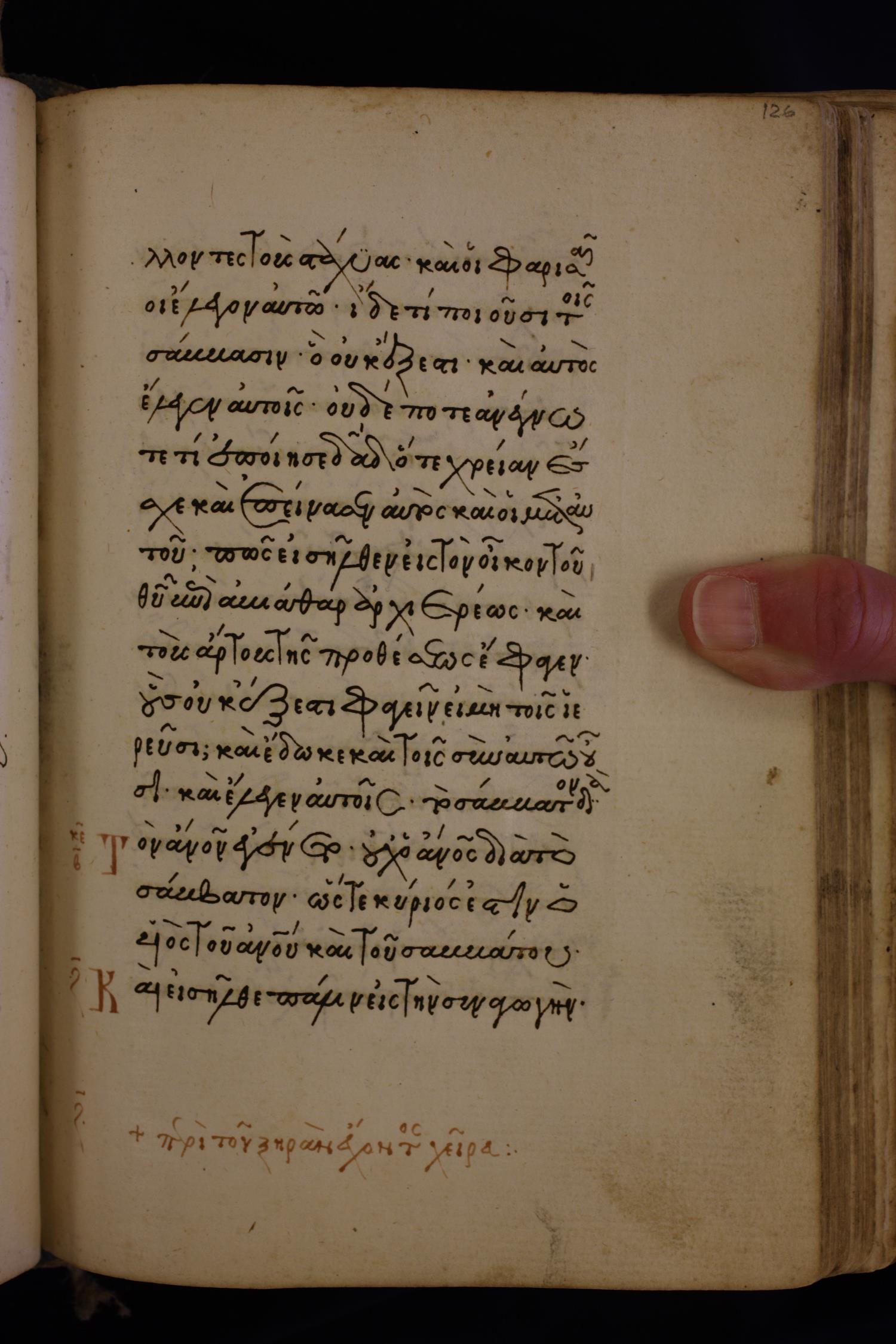 καὶ λέγει αὐτοῖς Οὐδέποτε ἀνέγνωτε τί ἐποίησεν Δαυεὶδ / Δαυίδ ὅτε χρείαν ἔσχεν καὶ ἐπείνασεν αὐτὸς καὶ οἱ μετ´ αὐτοῦ;