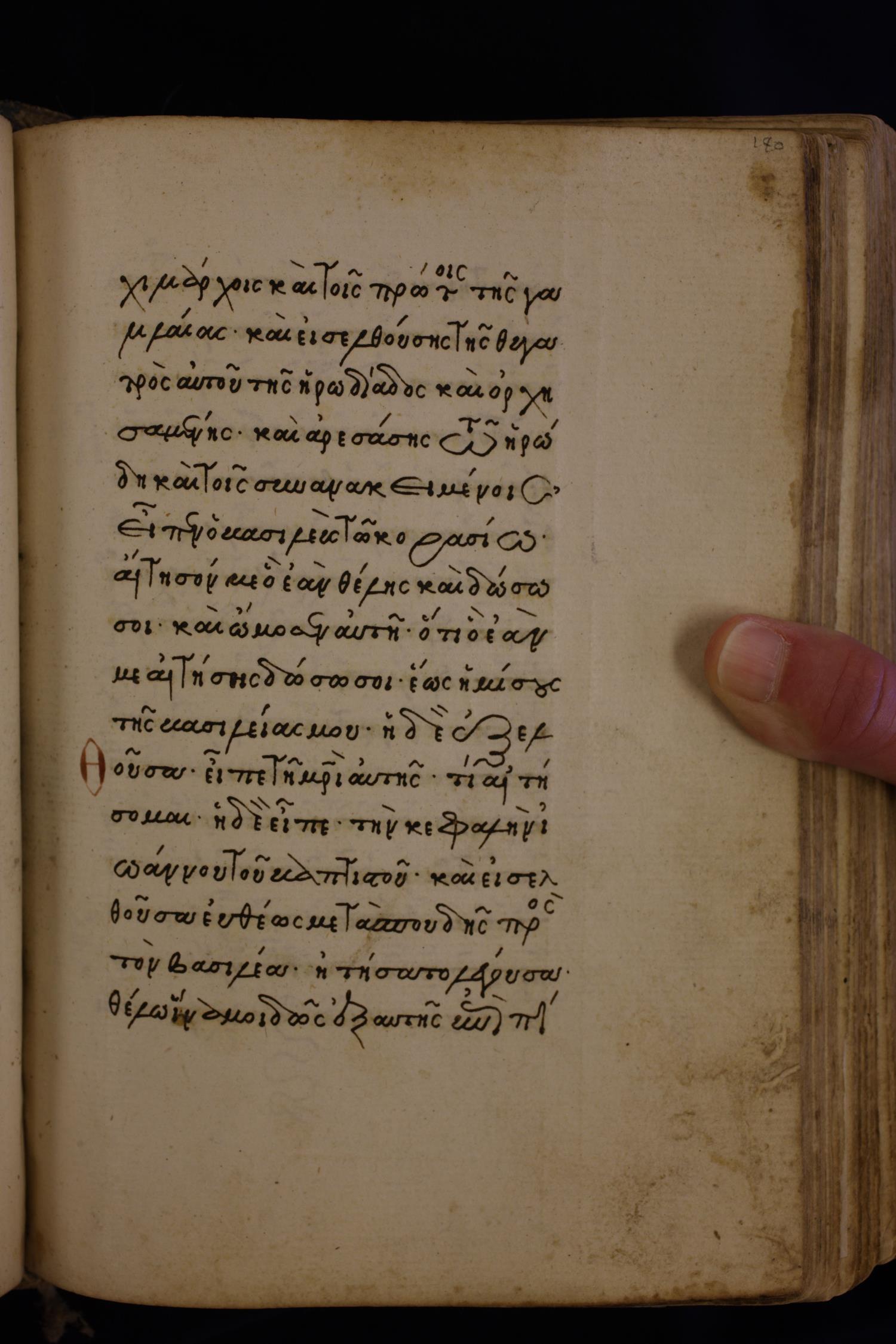 καὶ ἐξελθοῦσα εἶπεν τῇ μητρὶ αὐτῆς Τί αἰτήσωμαι; ἡ δὲ εἶπεν Τὴν κεφαλὴν Ἰωάνου / Ἰωάννου τοῦ βαπτίζοντος.