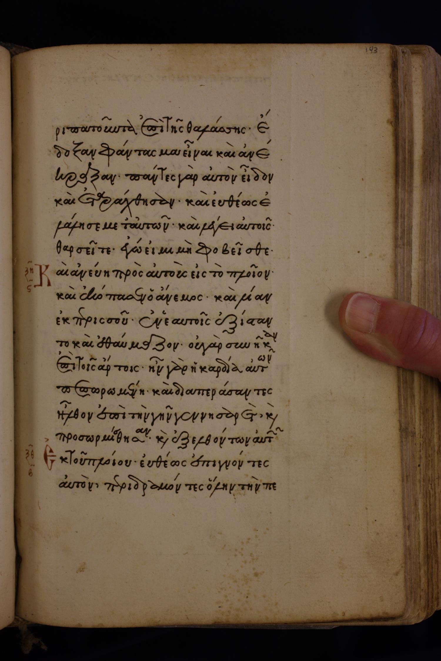 Fifteenth century minuscule (dated to 1430) of the Gospels on paper; 424 leaves, single column, 16 lines per column.