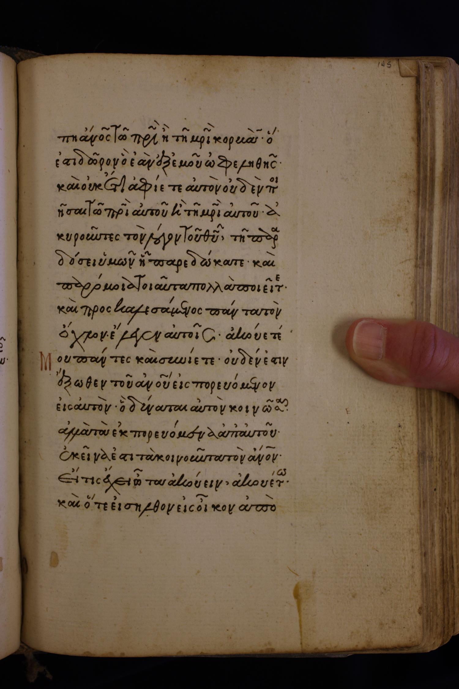 Fifteenth century minuscule (dated to 1430) of the Gospels on paper; 424 leaves, single column, 16 lines per column.