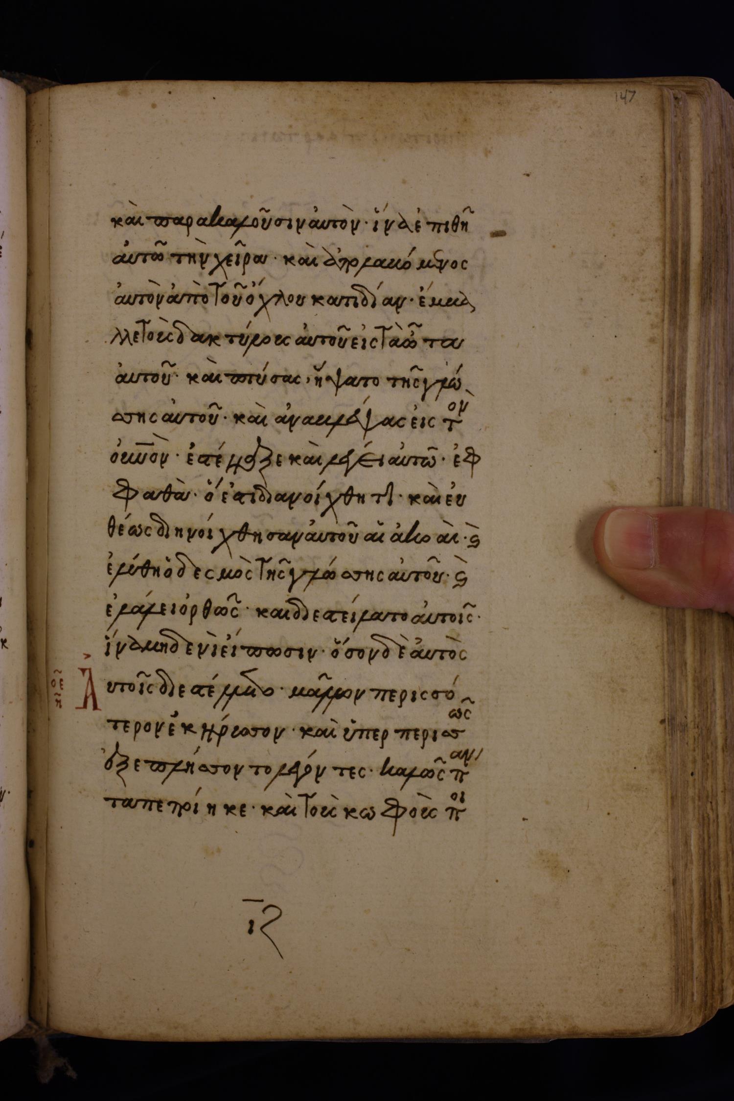 Fifteenth century minuscule (dated to 1430) of the Gospels on paper; 424 leaves, single column, 16 lines per column.