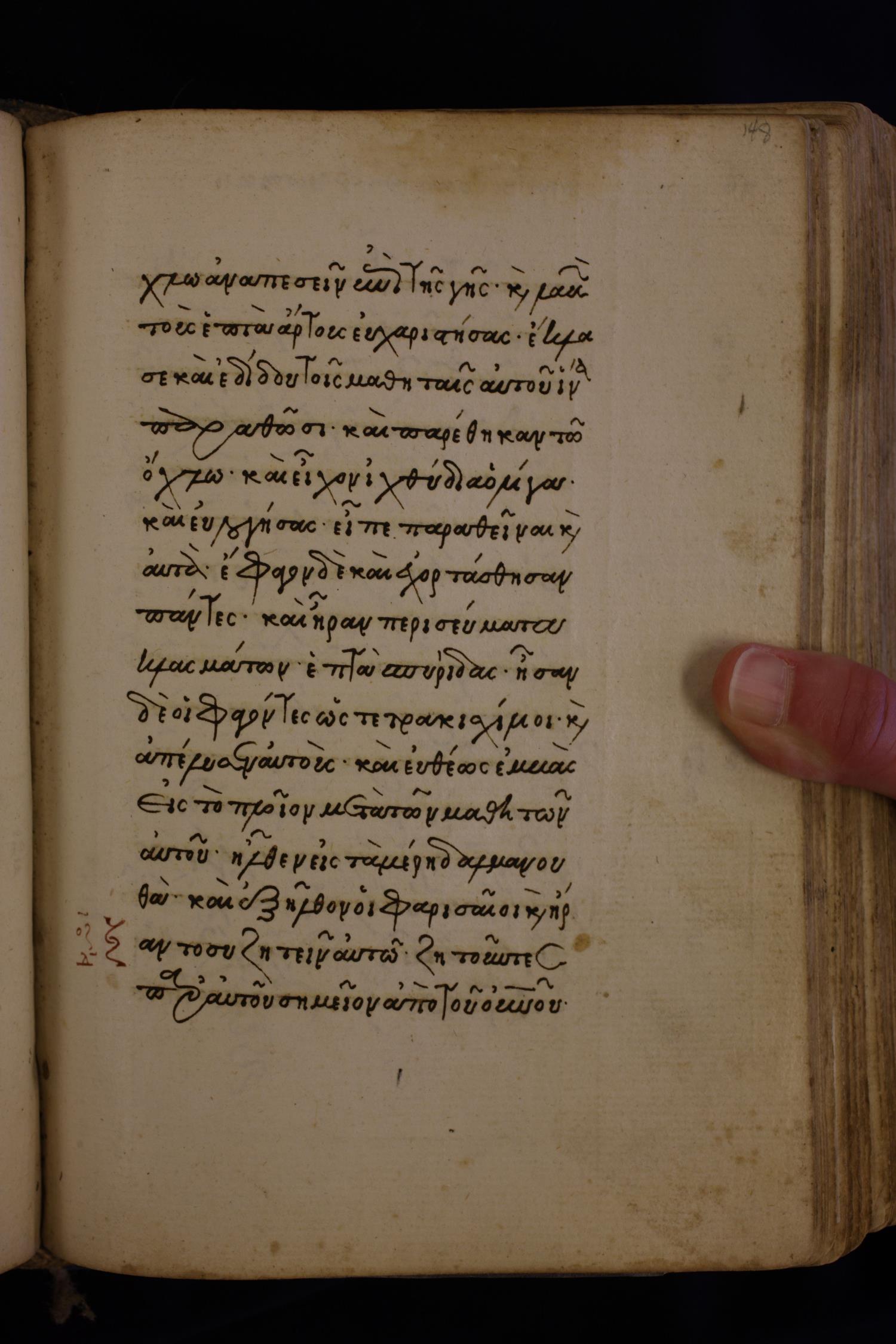 Fifteenth century minuscule (dated to 1430) of the Gospels on paper; 424 leaves, single column, 16 lines per column.