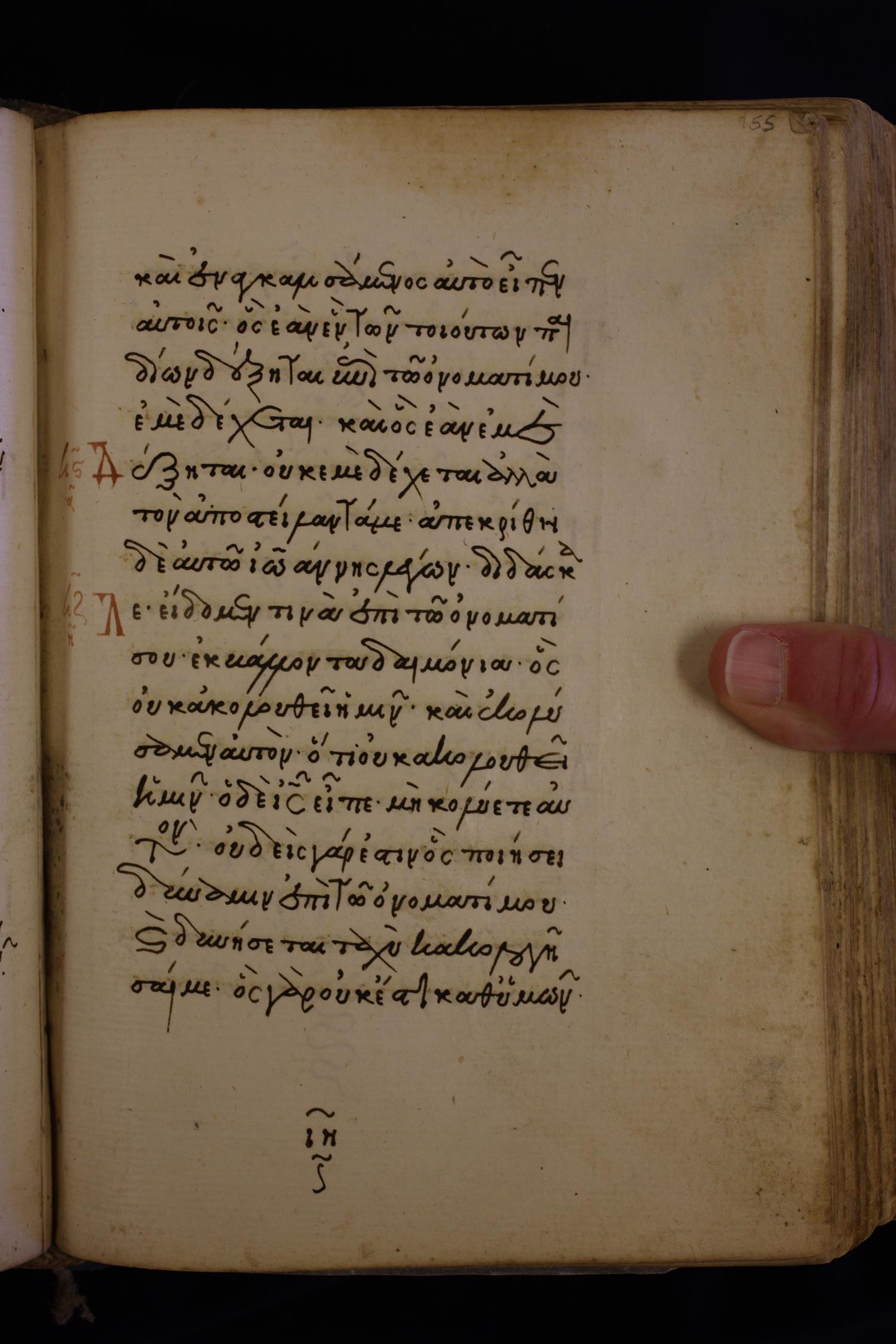 Fifteenth century minuscule (dated to 1430) of the Gospels on paper; 424 leaves, single column, 16 lines per column.