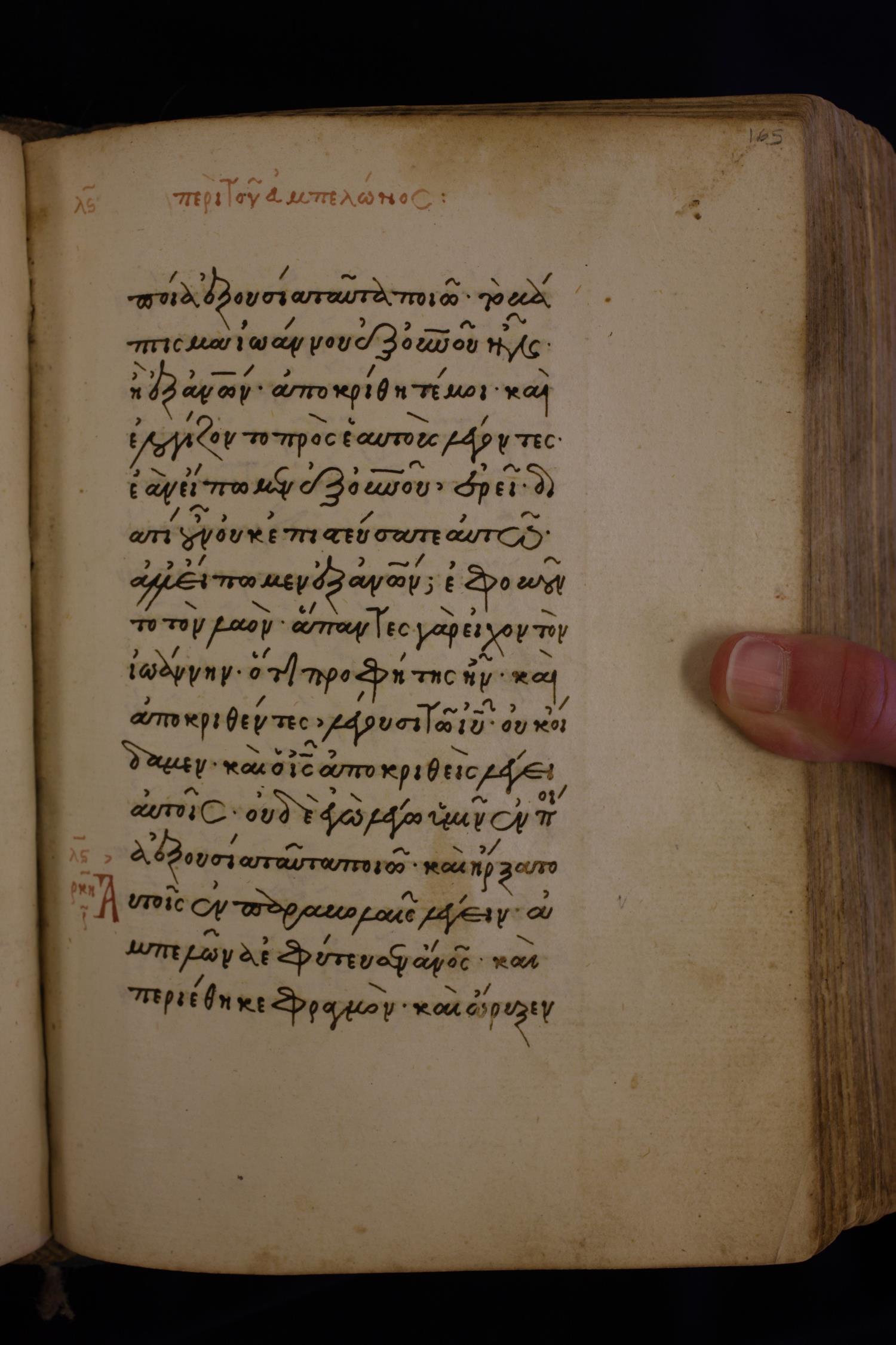 Fifteenth century minuscule (dated to 1430) of the Gospels on paper; 424 leaves, single column, 16 lines per column.