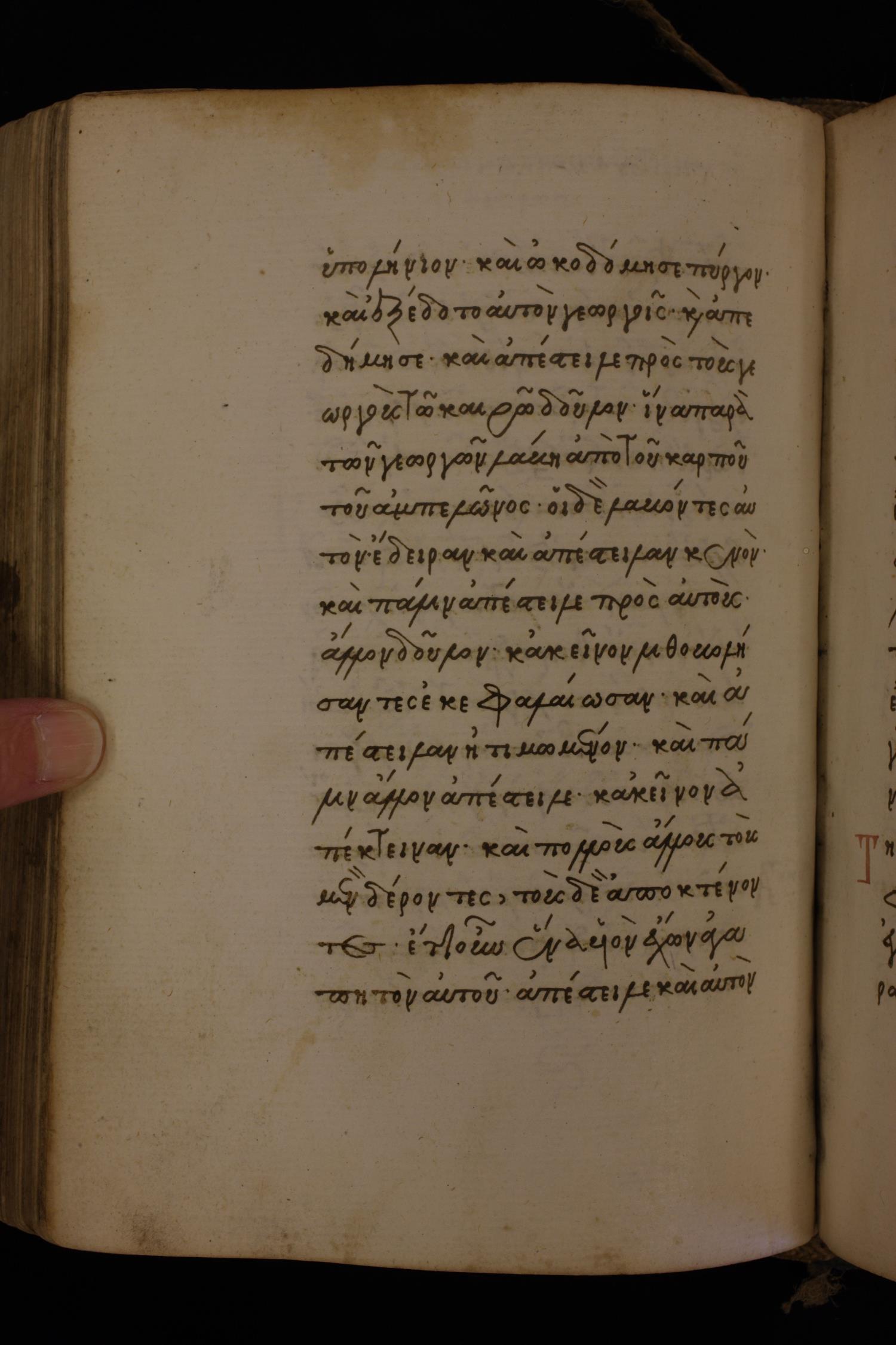 Fifteenth century minuscule (dated to 1430) of the Gospels on paper; 424 leaves, single column, 16 lines per column.