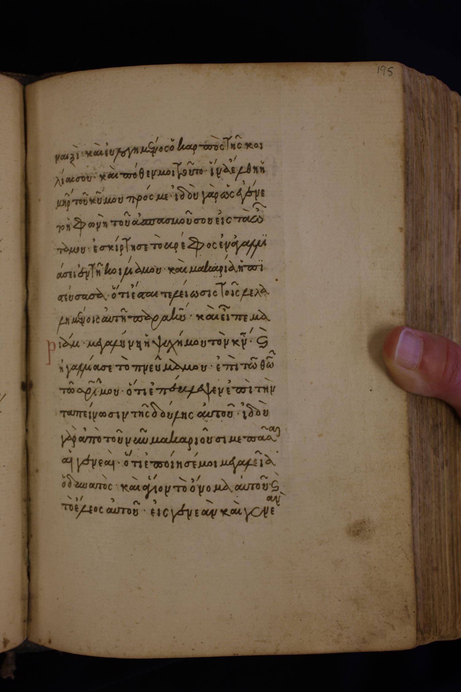 Fifteenth century minuscule (dated to 1430) of the Gospels on paper; 424 leaves, single column, 16 lines per column.