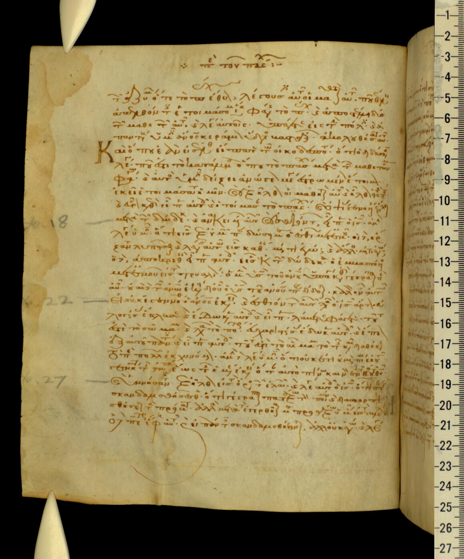 Twelfth-century minuscule of the Gospels, Acts, and Paul on parchment; 291 leaves, 1 column, 25 lines per column. The images have been made available by The President and Fellows of Magdalen College, Oxford. For more information about the images visit Digital Bodleian.