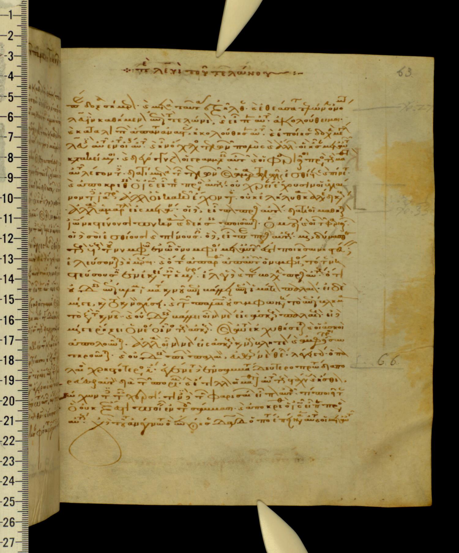Twelfth-century minuscule of the Gospels, Acts, and Paul on parchment; 291 leaves, 1 column, 25 lines per column. The images have been made available by The President and Fellows of Magdalen College, Oxford. For more information about the images visit Digital Bodleian.