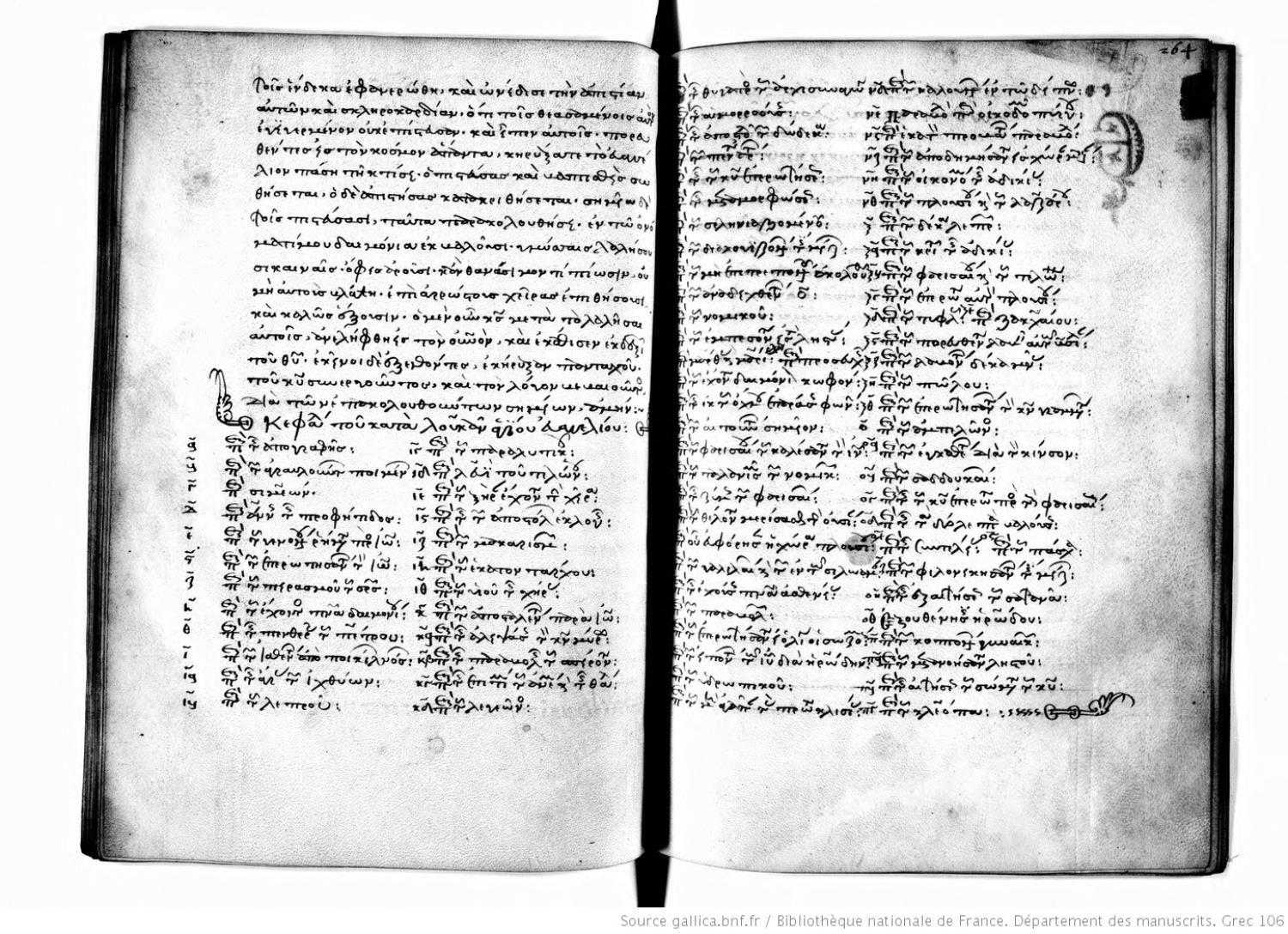 Thirteenth-century minuscule of the Gospels, Acts, and Paul on parchment; 342 leaves; 1 column; 28 lines per column. These images are made available by the Bibliothèque Nationale France. For recent digital images visit BNF Gallica.