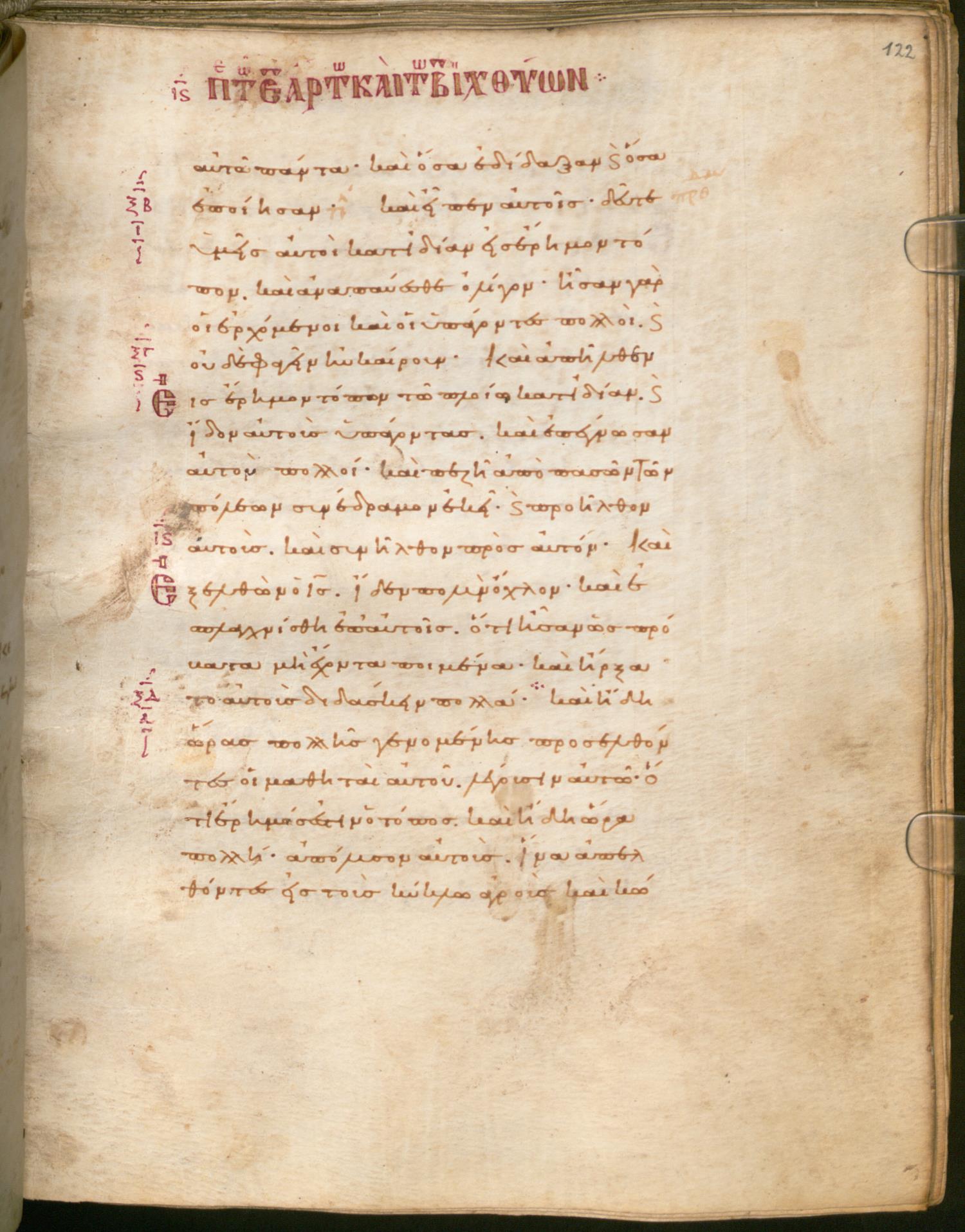 Tenth century minuscule of the Gospels on parchment; 305 leaves; 1 column per page; 20 lines per column. These images are made available by the Bayerische Staatsbibliothek according to Creative Commons. For recent digital images, visit Münchener Digitalisierungs Zentrum Digitale Bibliothek.