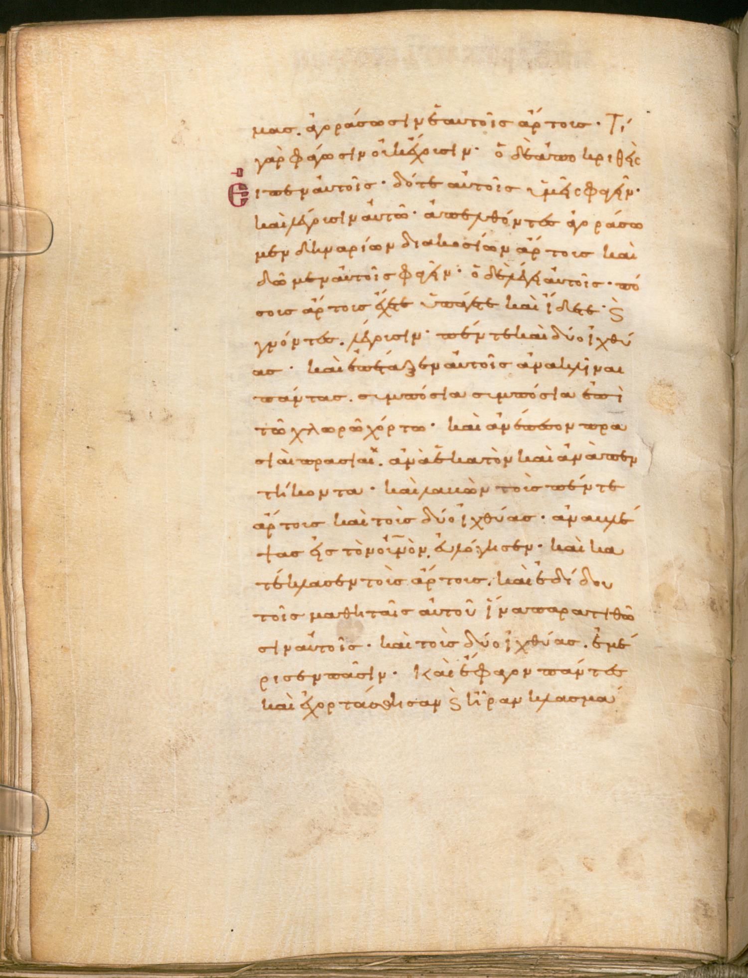 ὁ δὲ λέγει αὐτοῖς Πόσους ἔχετε ⇔ ἄρτους; ὑπάγετε ἴδετε. καὶ γνόντες λέγουσιν Πέντε, καὶ δύο ἰχθύας.