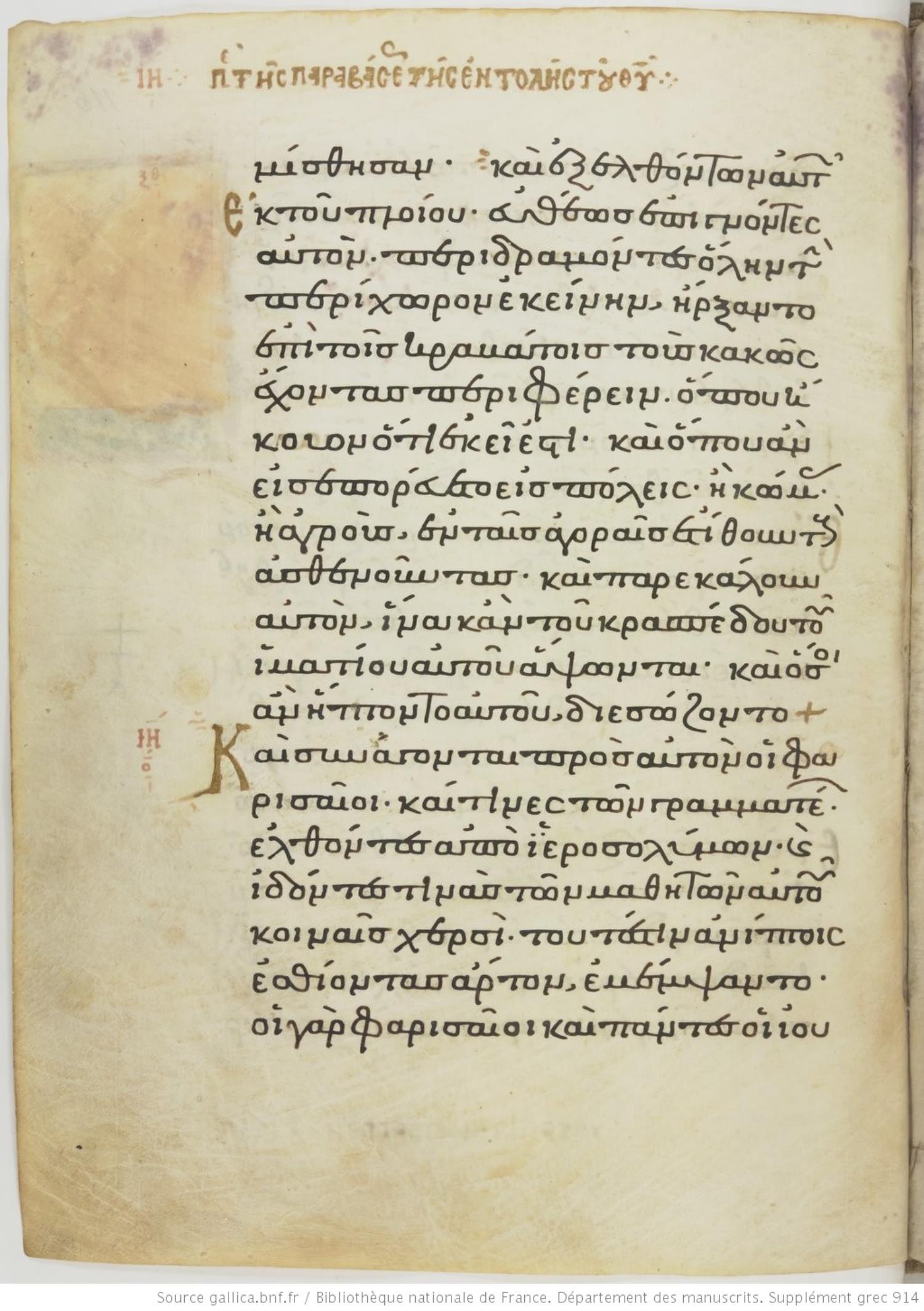 Minuscule | shelf: Suppl. Gr. 914 | Parchment | Gospels | Greek | Digital