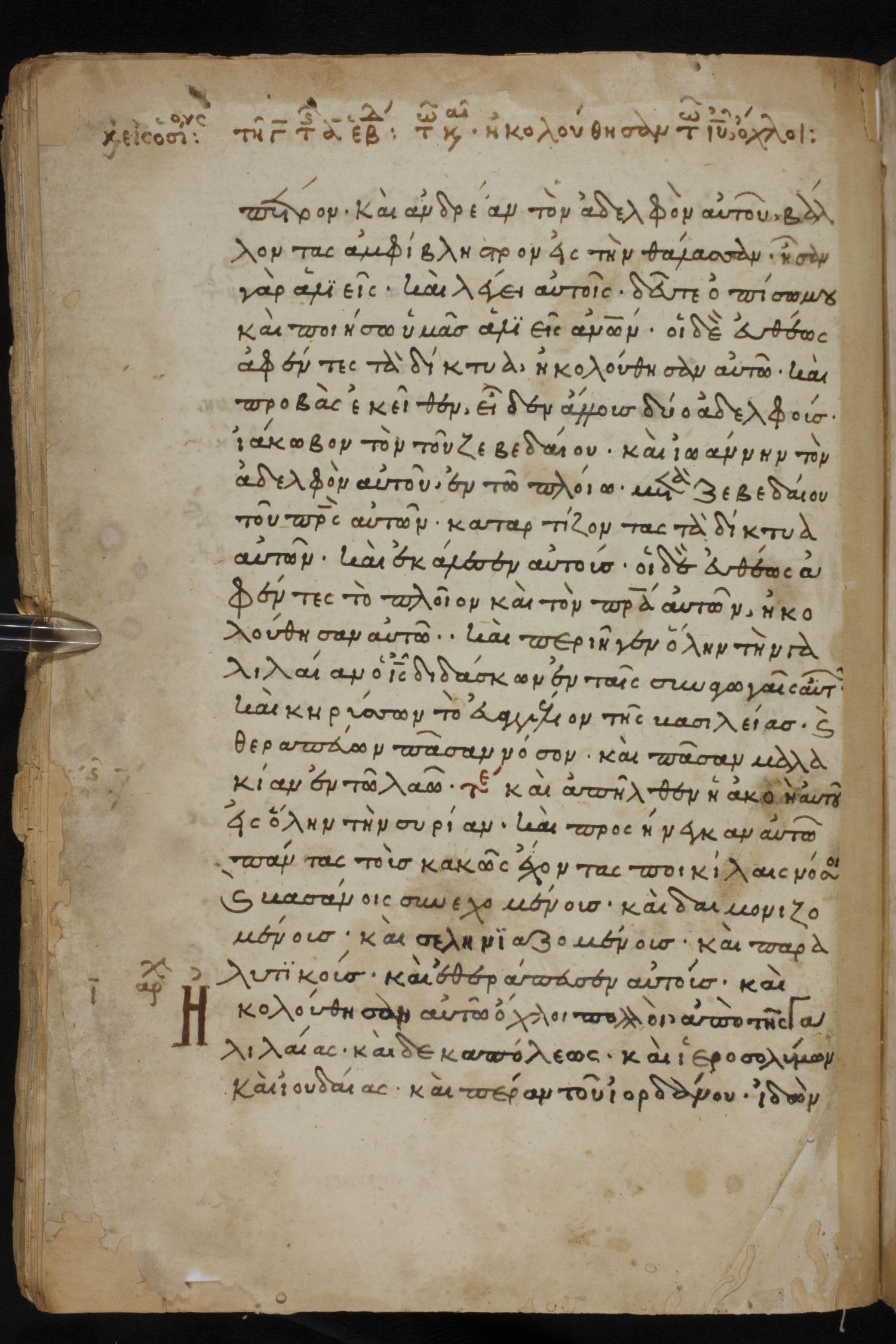 Thirteenth century minuscule of the Gospels, Apostolos, Paul, and Revelation on paper; 412 leaves, 1 column, 24-28 lines per column. Images were taken at the National Library of Greece in Athens.