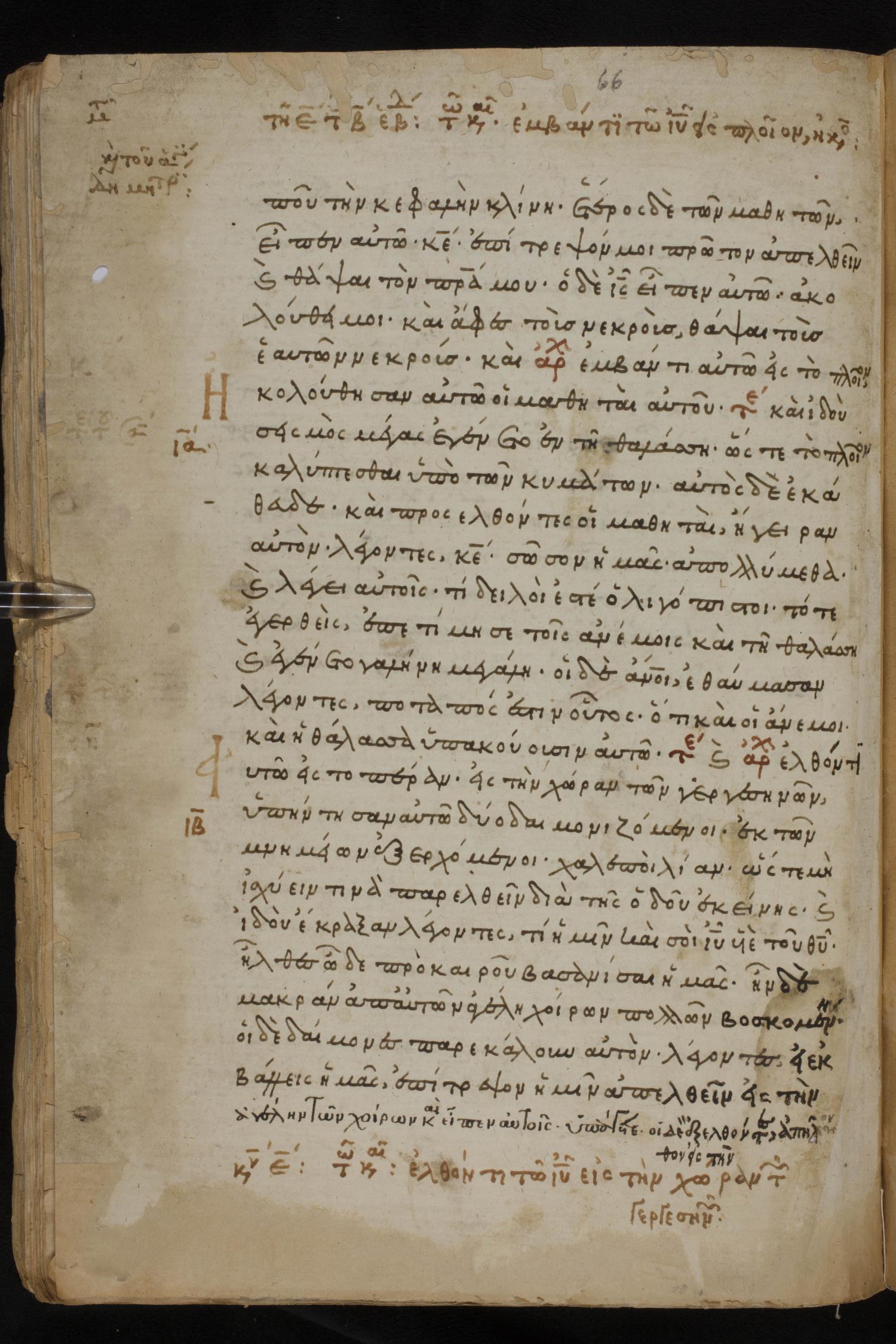 Thirteenth century minuscule of the Gospels, Apostolos, Paul, and Revelation on paper; 412 leaves, 1 column, 24-28 lines per column. Images were taken at the National Library of Greece in Athens.