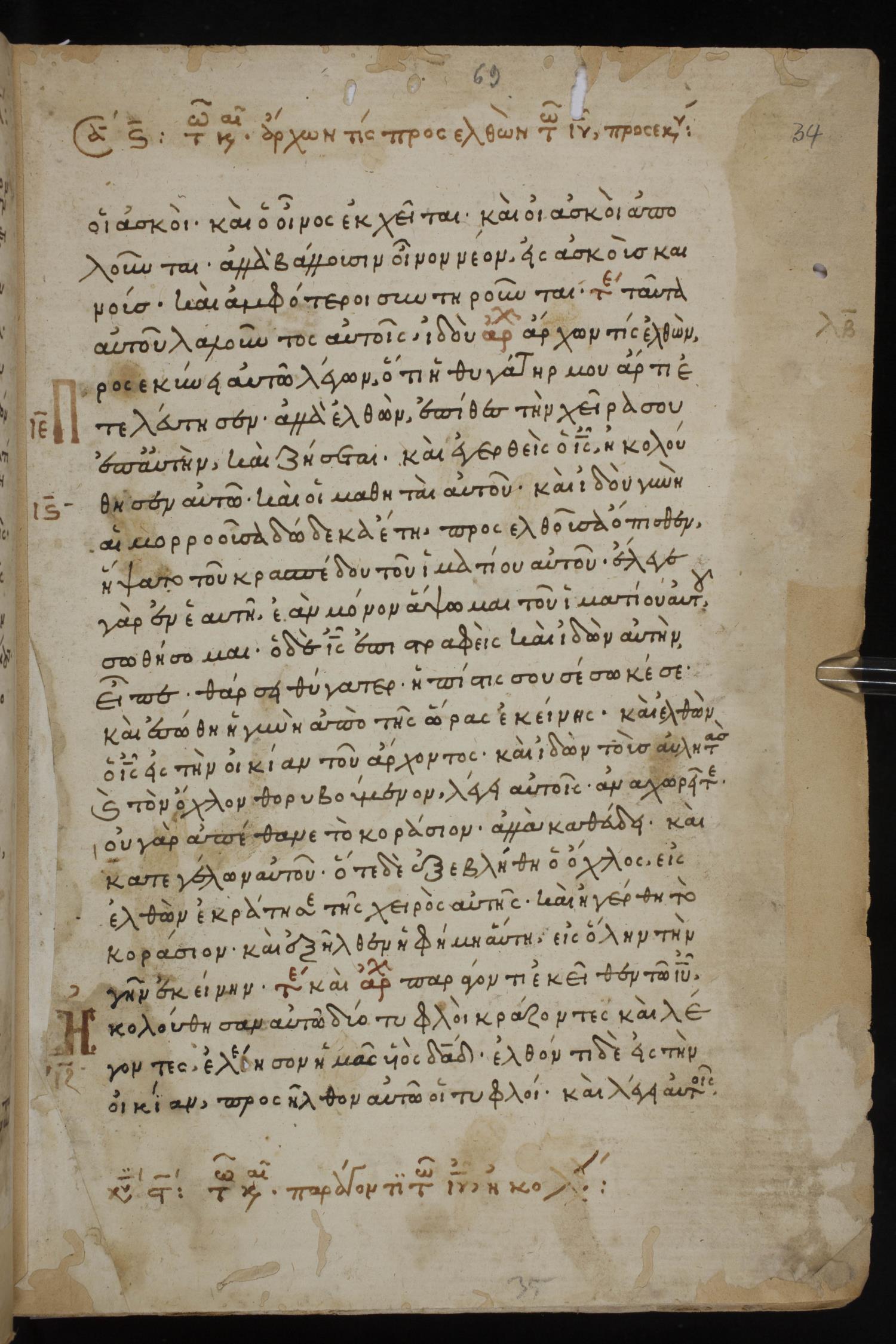 Thirteenth century minuscule of the Gospels, Apostolos, Paul, and Revelation on paper; 412 leaves, 1 column, 24-28 lines per column. Images were taken at the National Library of Greece in Athens.