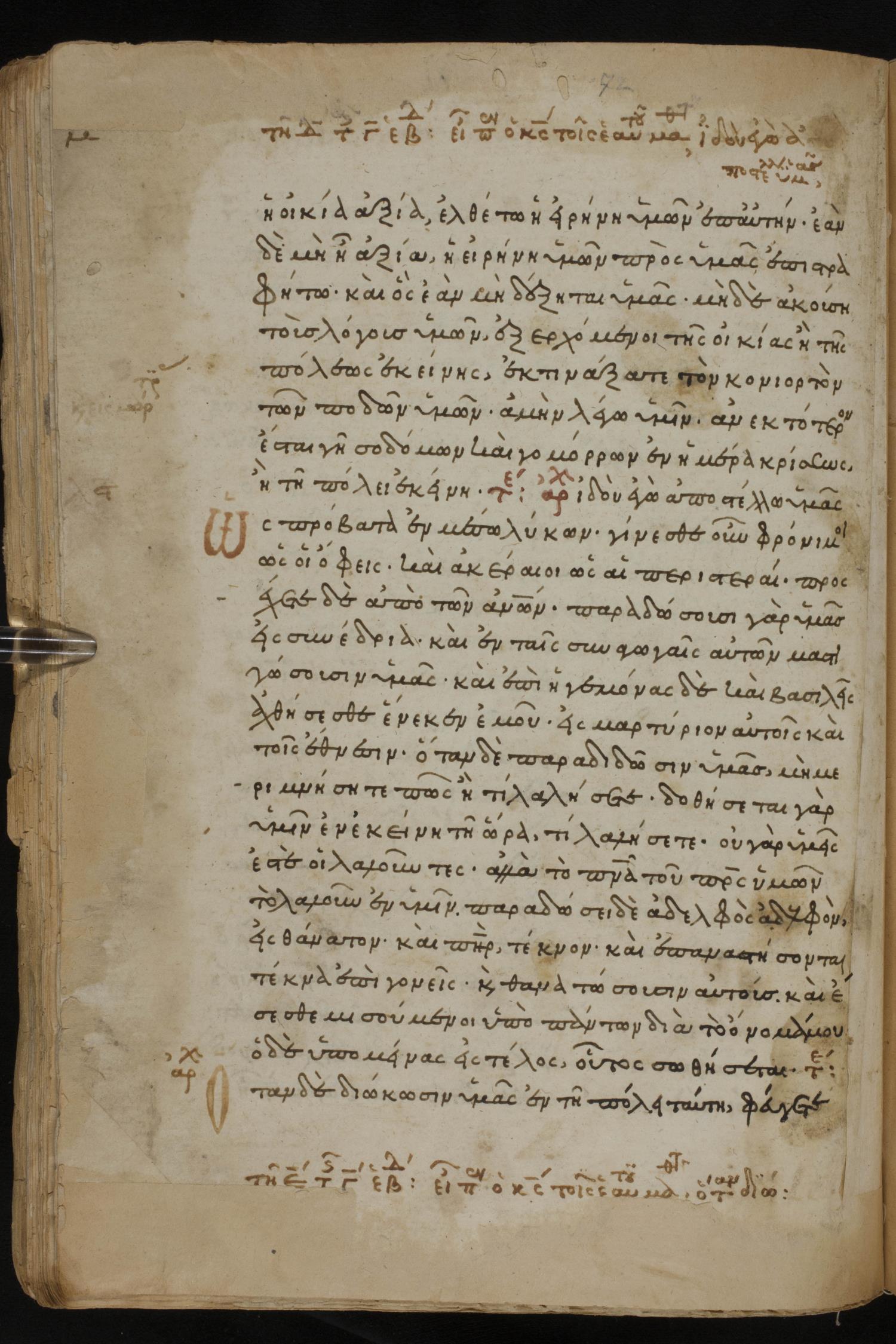 Thirteenth century minuscule of the Gospels, Apostolos, Paul, and Revelation on paper; 412 leaves, 1 column, 24-28 lines per column. Images were taken at the National Library of Greece in Athens.