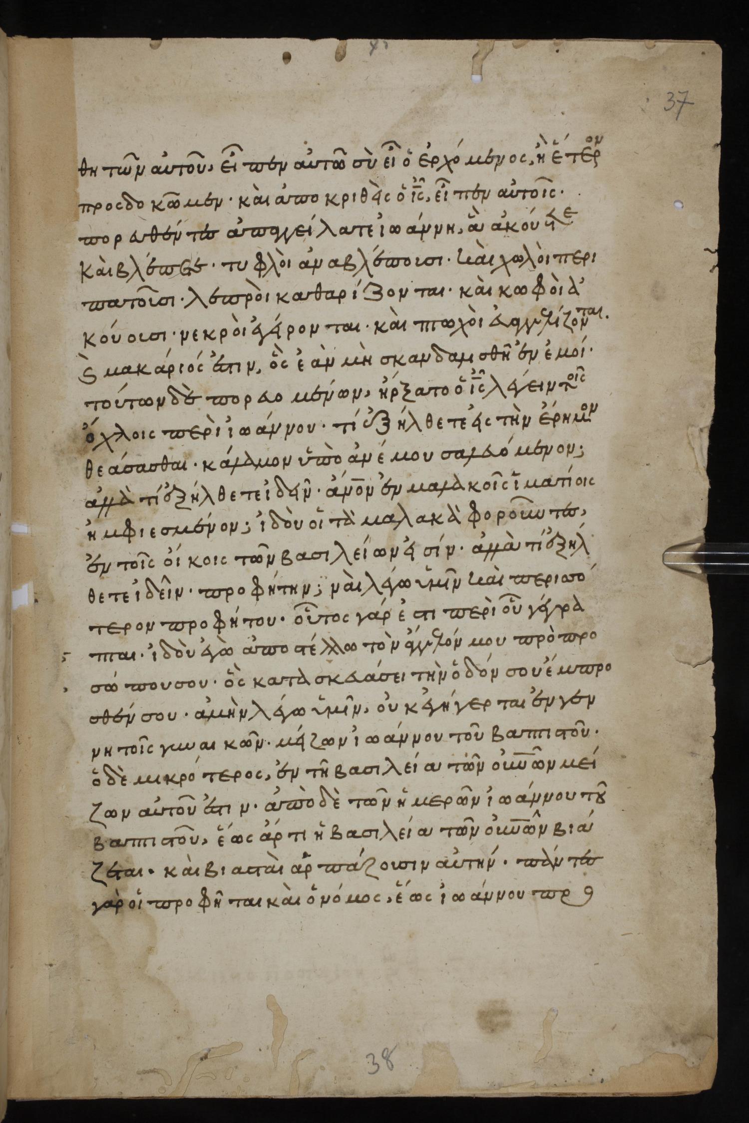Thirteenth century minuscule of the Gospels, Apostolos, Paul, and Revelation on paper; 412 leaves, 1 column, 24-28 lines per column. Images were taken at the National Library of Greece in Athens.