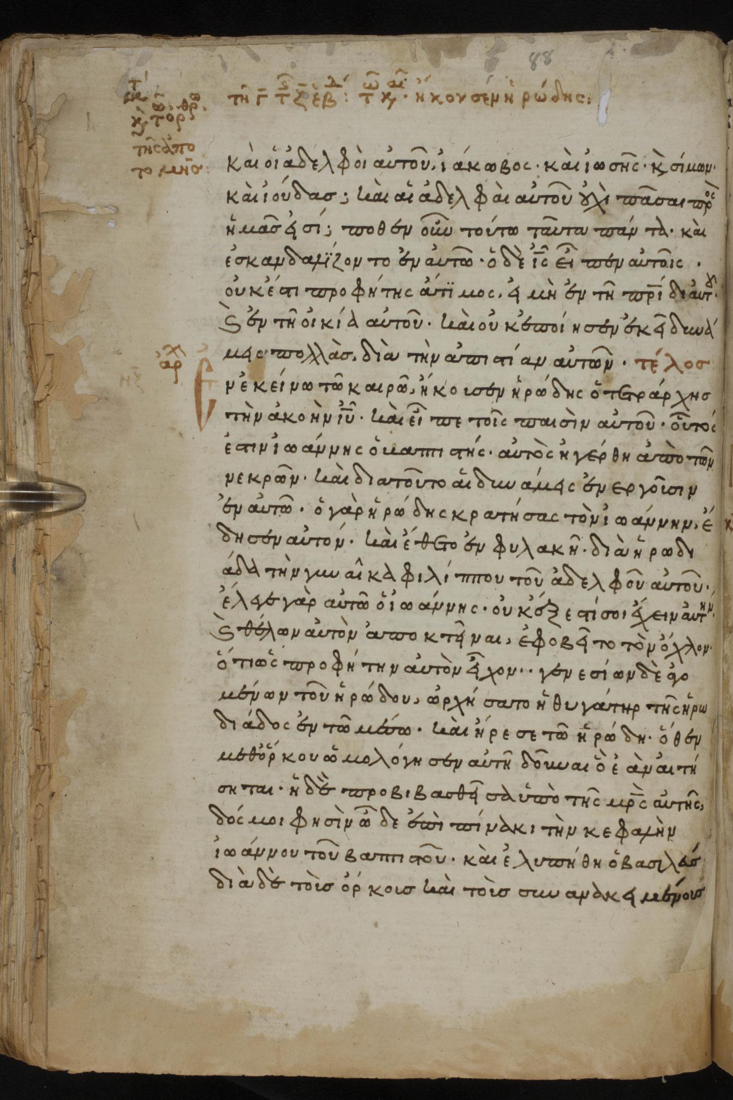 Thirteenth century minuscule of the Gospels, Apostolos, Paul, and Revelation on paper; 412 leaves, 1 column, 24-28 lines per column. Images were taken at the National Library of Greece in Athens.