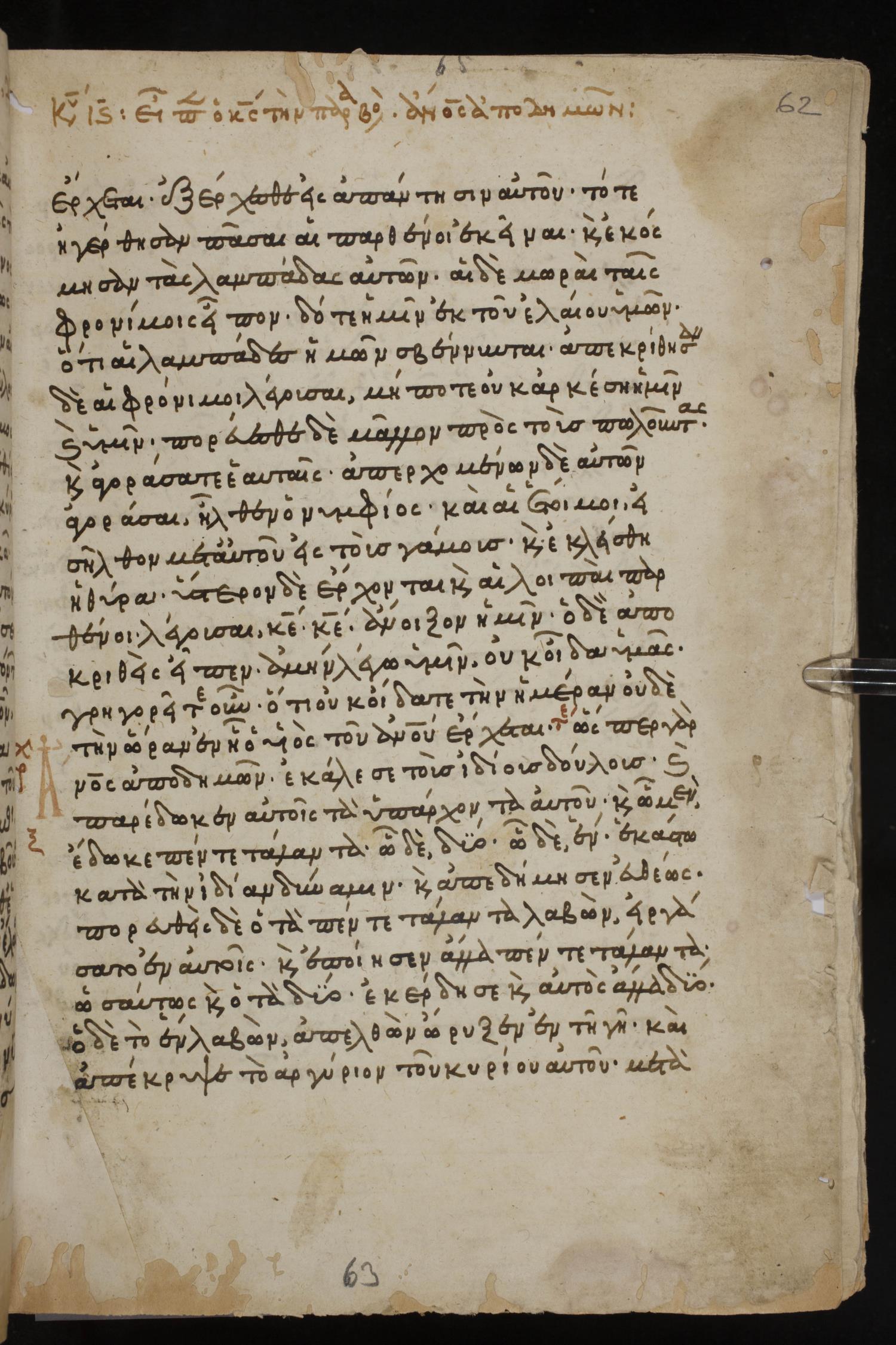 Thirteenth century minuscule of the Gospels, Apostolos, Paul, and Revelation on paper; 412 leaves, 1 column, 24-28 lines per column. Images were taken at the National Library of Greece in Athens.