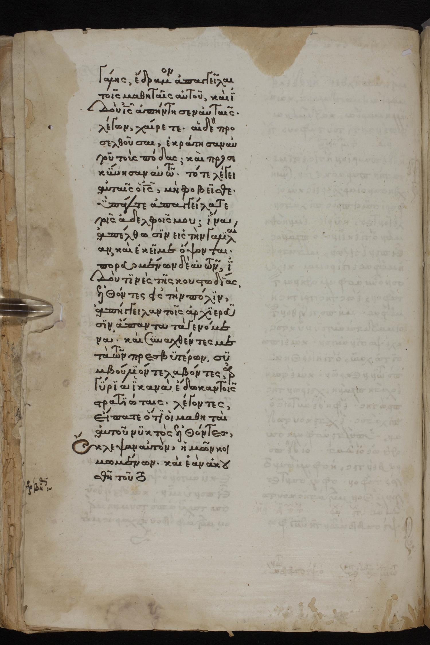 Thirteenth century minuscule of the Gospels, Apostolos, Paul, and Revelation on paper; 412 leaves, 1 column, 24-28 lines per column. Images were taken at the National Library of Greece in Athens.