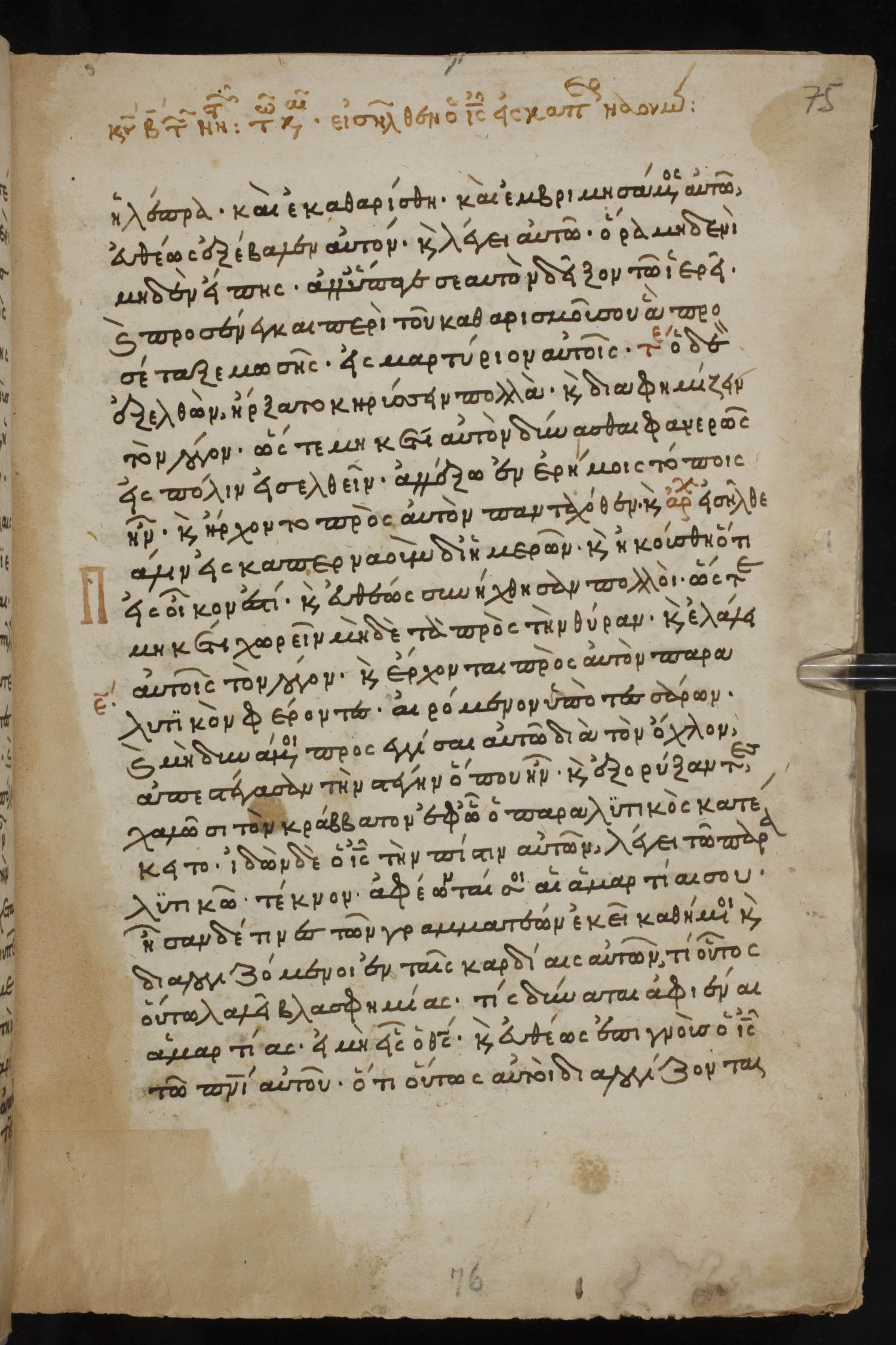Thirteenth century minuscule of the Gospels, Apostolos, Paul, and Revelation on paper; 412 leaves, 1 column, 24-28 lines per column. Images were taken at the National Library of Greece in Athens.