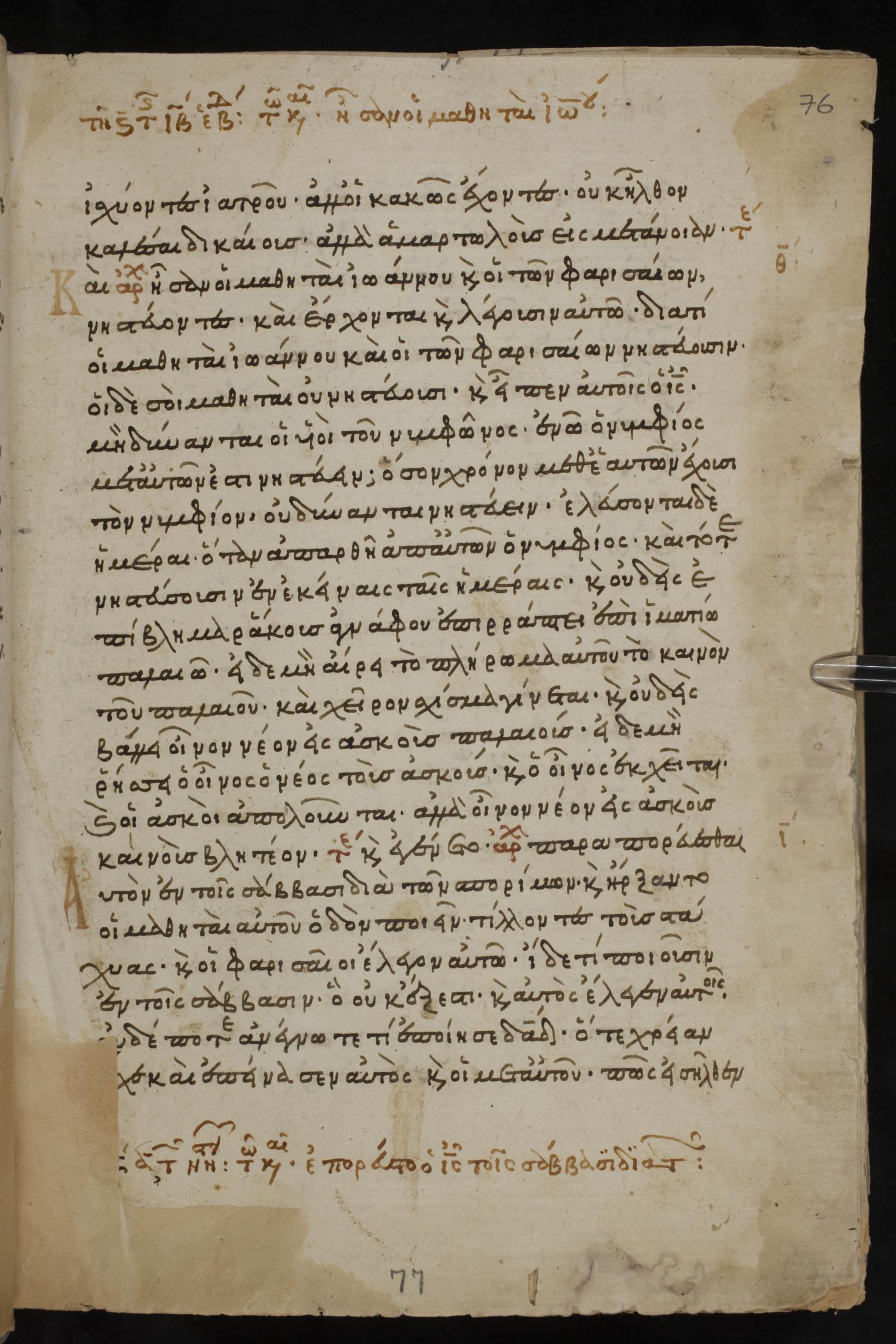 Thirteenth century minuscule of the Gospels, Apostolos, Paul, and Revelation on paper; 412 leaves, 1 column, 24-28 lines per column. Images were taken at the National Library of Greece in Athens.