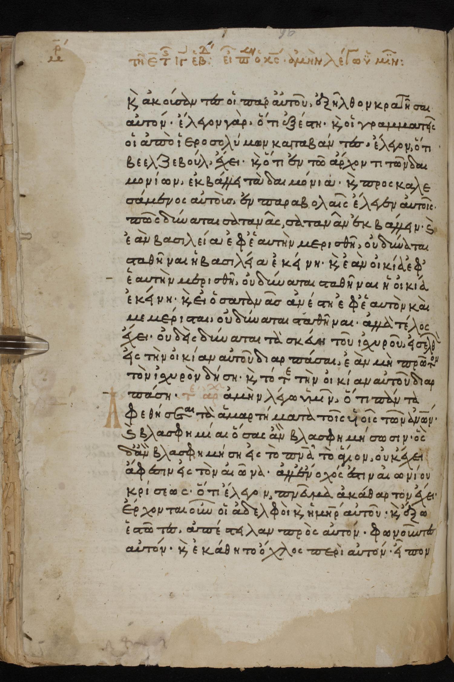 Thirteenth century minuscule of the Gospels, Apostolos, Paul, and Revelation on paper; 412 leaves, 1 column, 24-28 lines per column. Images were taken at the National Library of Greece in Athens.
