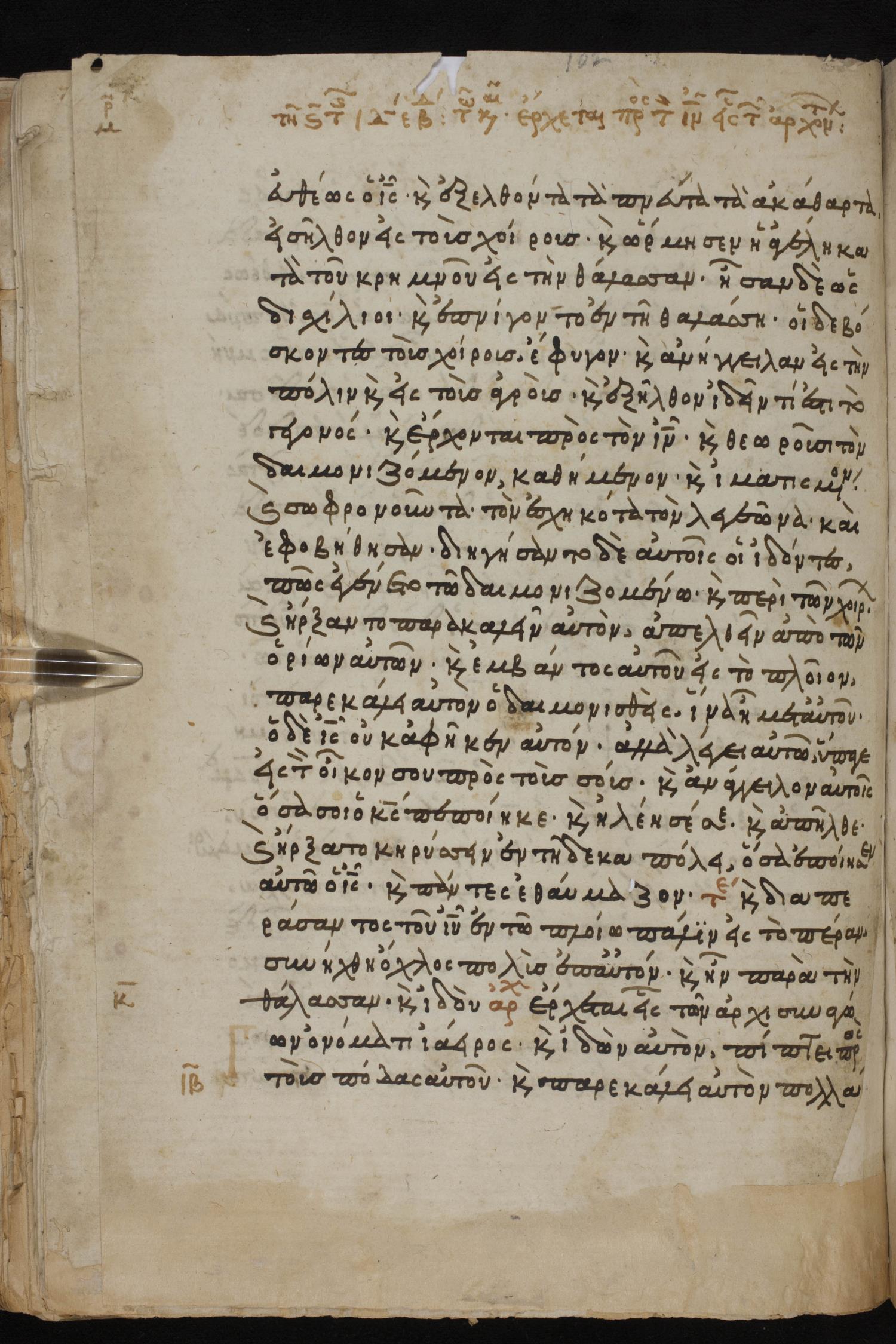 Thirteenth century minuscule of the Gospels, Apostolos, Paul, and Revelation on paper; 412 leaves, 1 column, 24-28 lines per column. Images were taken at the National Library of Greece in Athens.