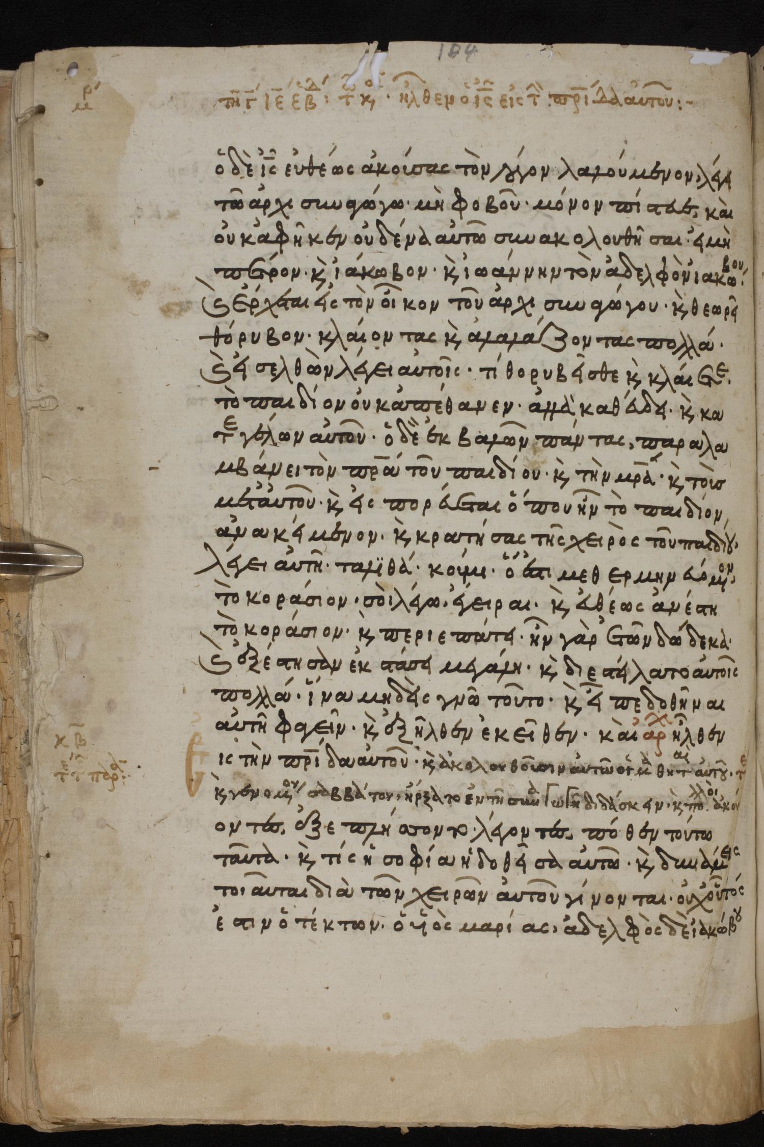 Thirteenth century minuscule of the Gospels, Apostolos, Paul, and Revelation on paper; 412 leaves, 1 column, 24-28 lines per column. Images were taken at the National Library of Greece in Athens.