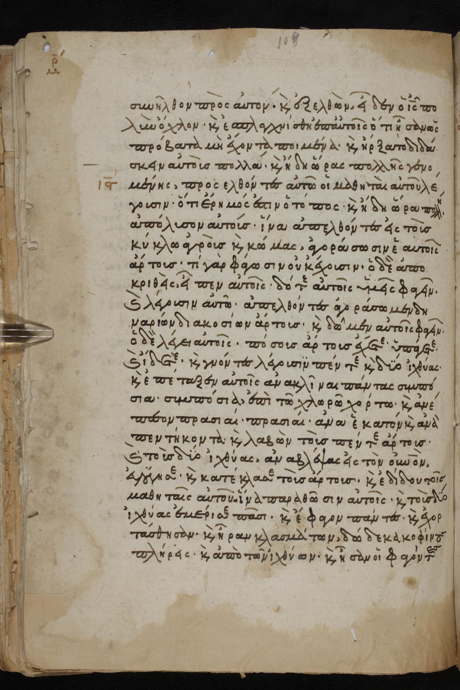 Thirteenth century minuscule of the Gospels, Apostolos, Paul, and Revelation on paper; 412 leaves, 1 column, 24-28 lines per column. Images were taken at the National Library of Greece in Athens.