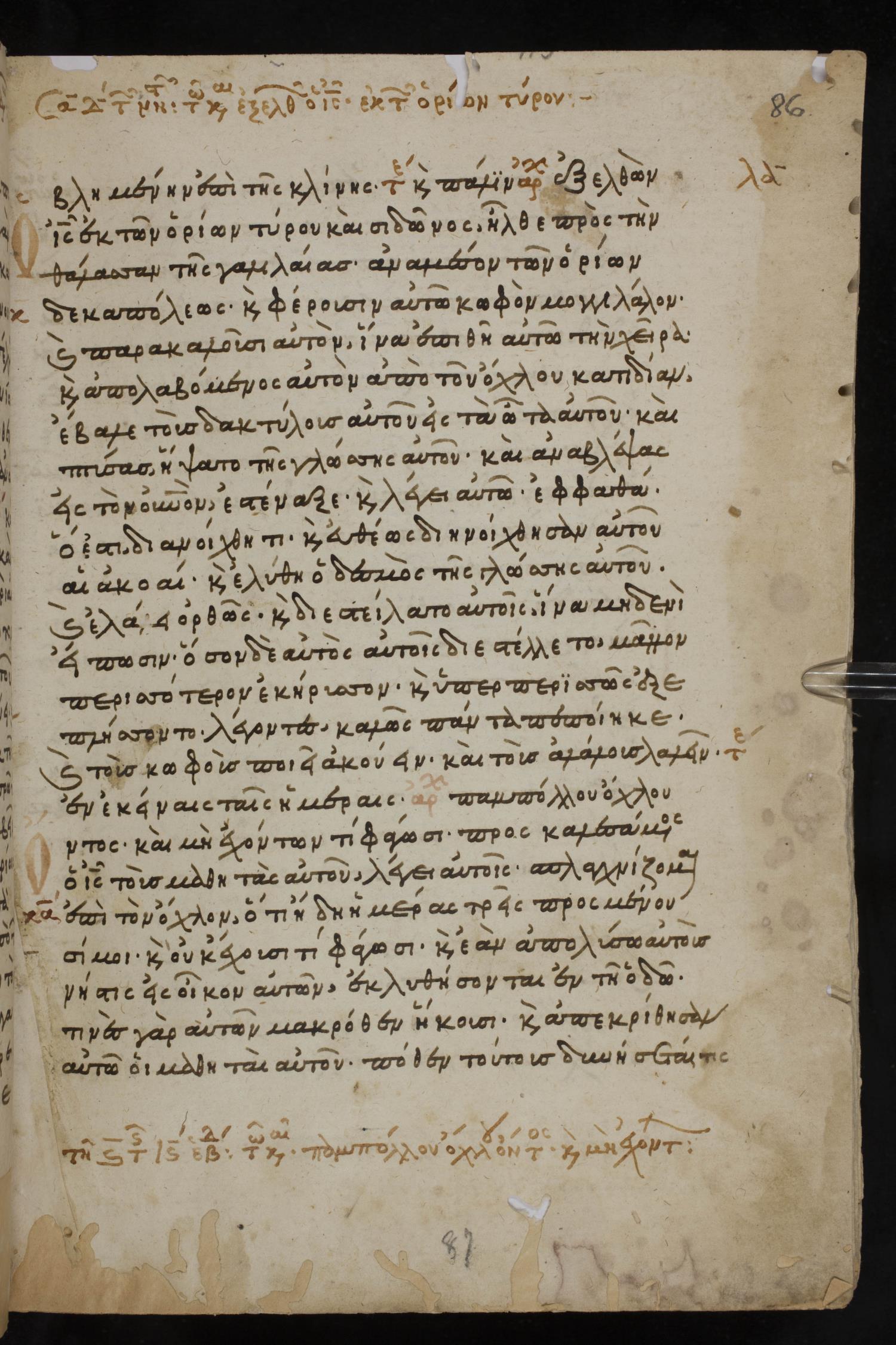 Thirteenth century minuscule of the Gospels, Apostolos, Paul, and Revelation on paper; 412 leaves, 1 column, 24-28 lines per column. Images were taken at the National Library of Greece in Athens.