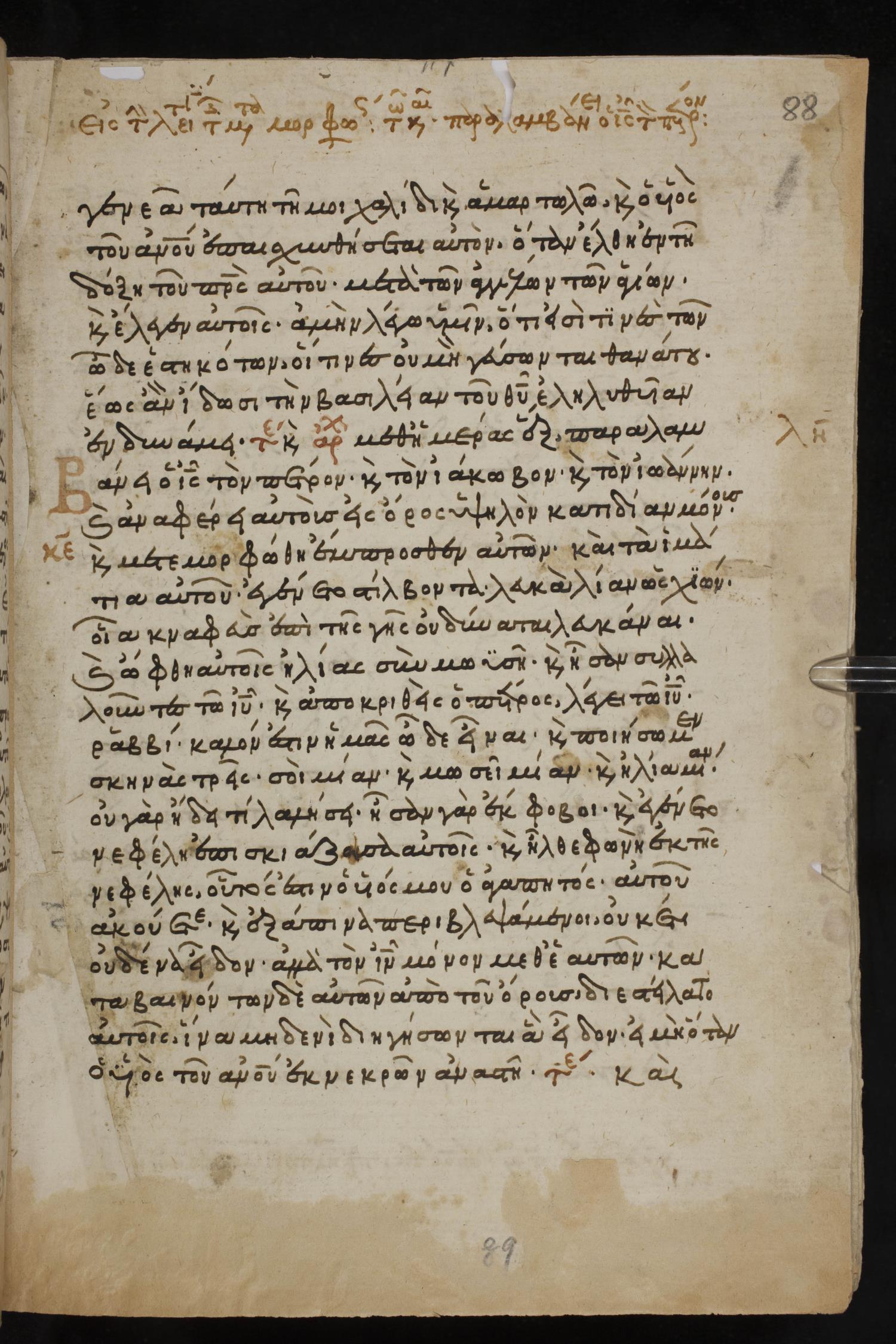 Thirteenth century minuscule of the Gospels, Apostolos, Paul, and Revelation on paper; 412 leaves, 1 column, 24-28 lines per column. Images were taken at the National Library of Greece in Athens.