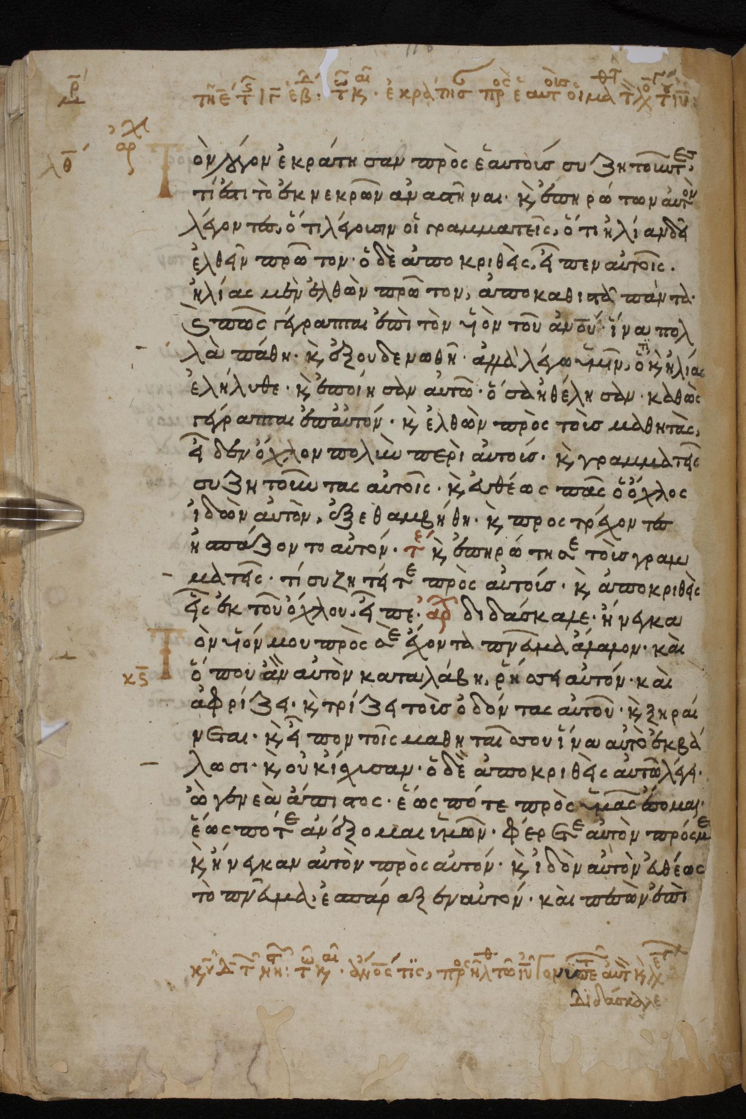 Thirteenth century minuscule of the Gospels, Apostolos, Paul, and Revelation on paper; 412 leaves, 1 column, 24-28 lines per column. Images were taken at the National Library of Greece in Athens.
