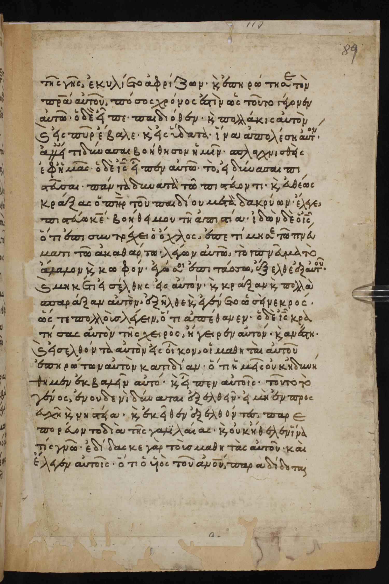 Thirteenth century minuscule of the Gospels, Apostolos, Paul, and Revelation on paper; 412 leaves, 1 column, 24-28 lines per column. Images were taken at the National Library of Greece in Athens.